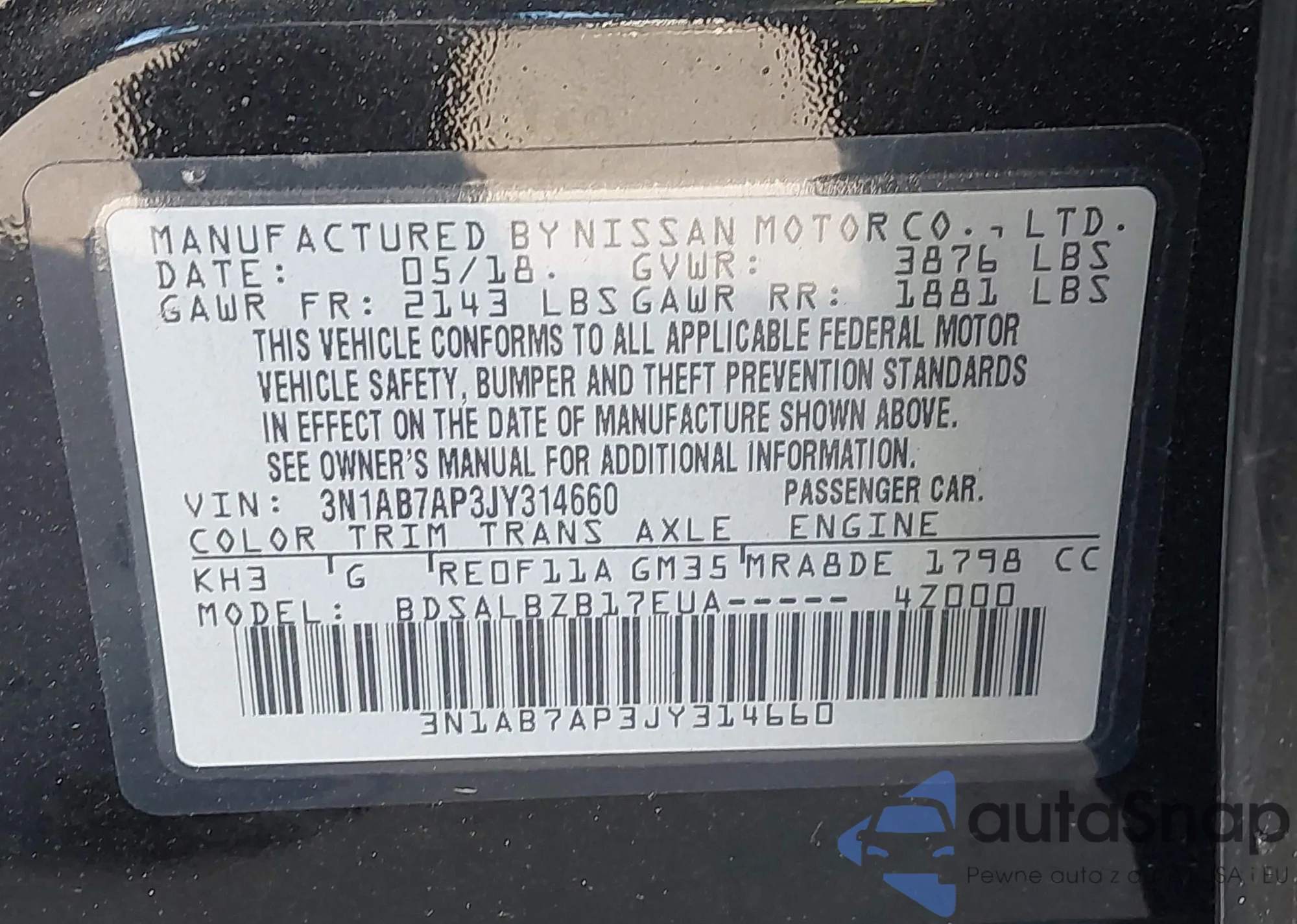• VIN 3N1AB7AP3JY314660