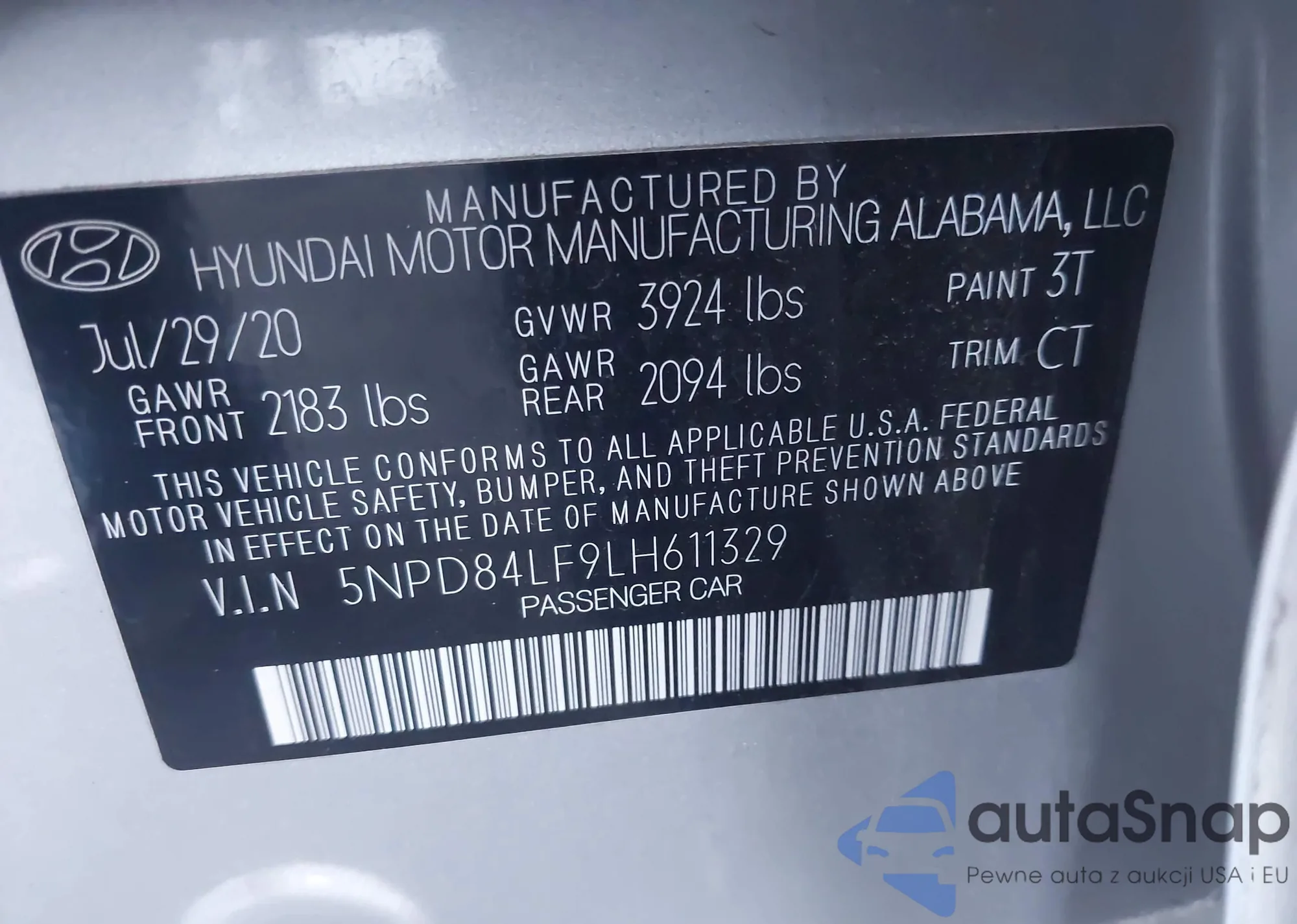 LOT: 43566248 VIN: 5NPD84LF9LH611329