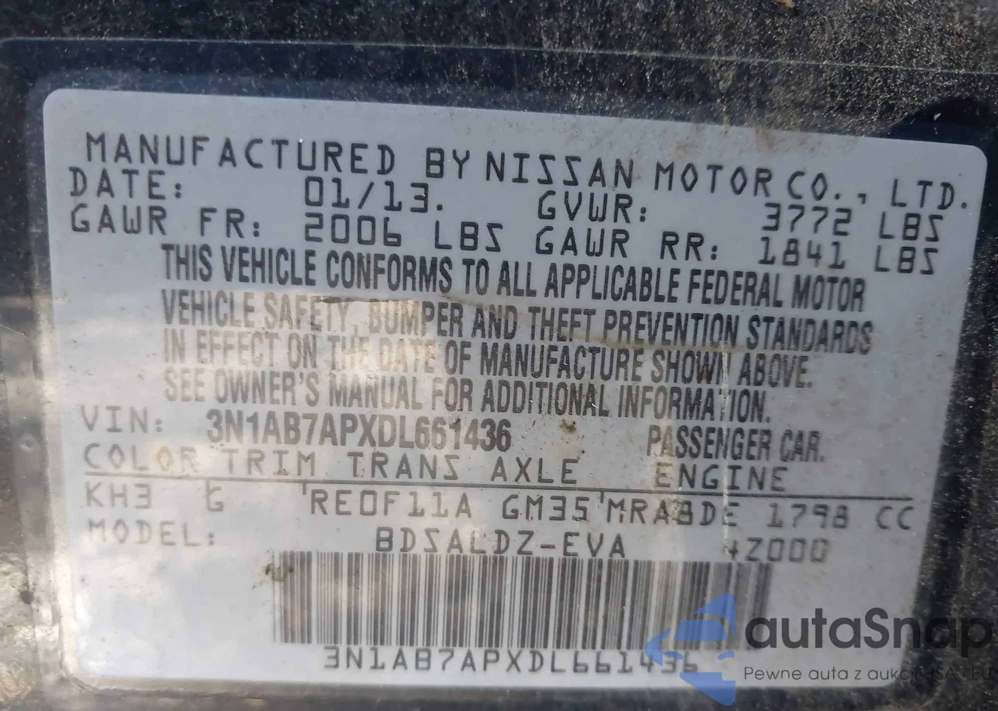 LOT: 43739062 VIN: JN8AS5MT1DW524586