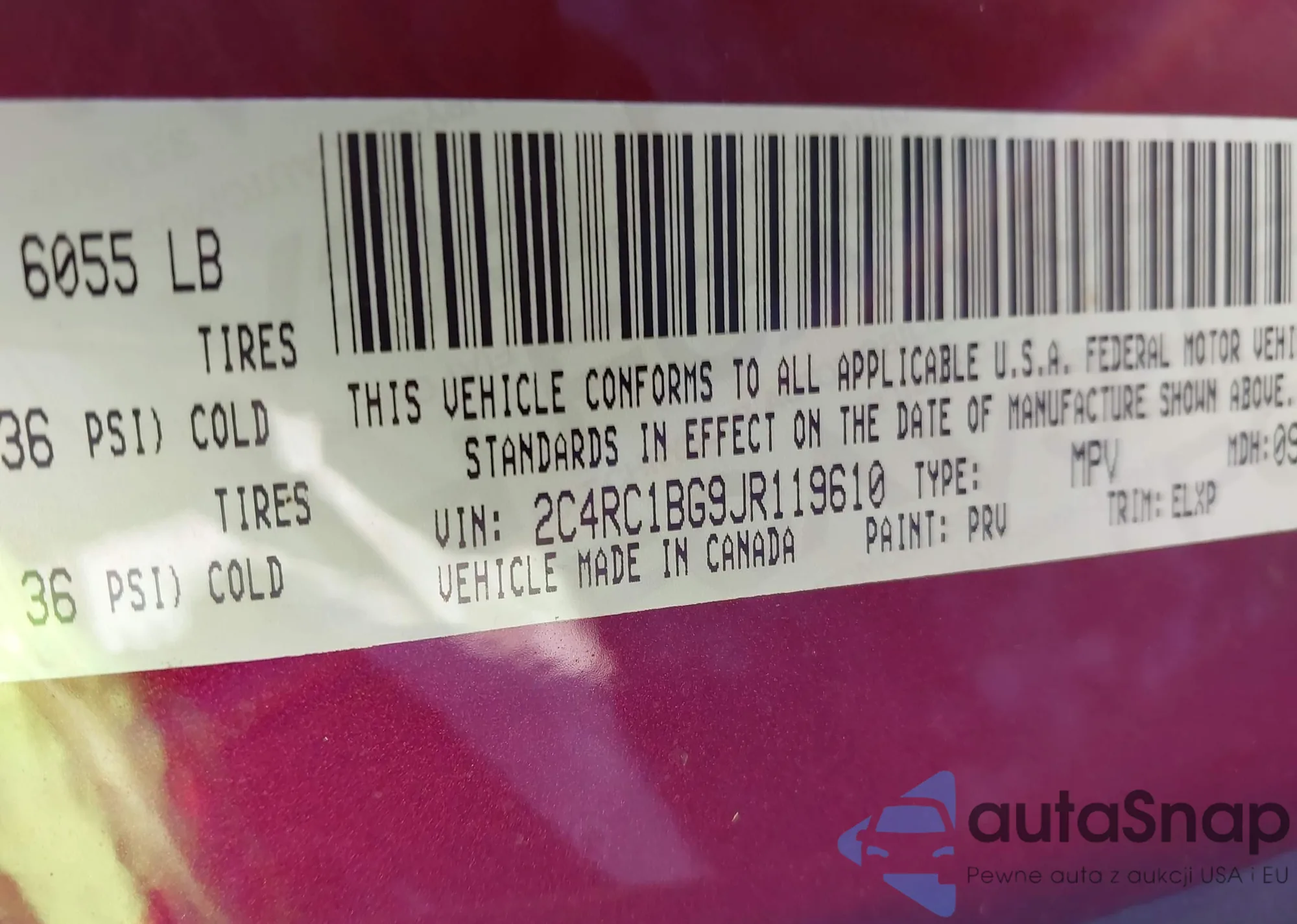 • VIN 2C4RC1BG9JR119610