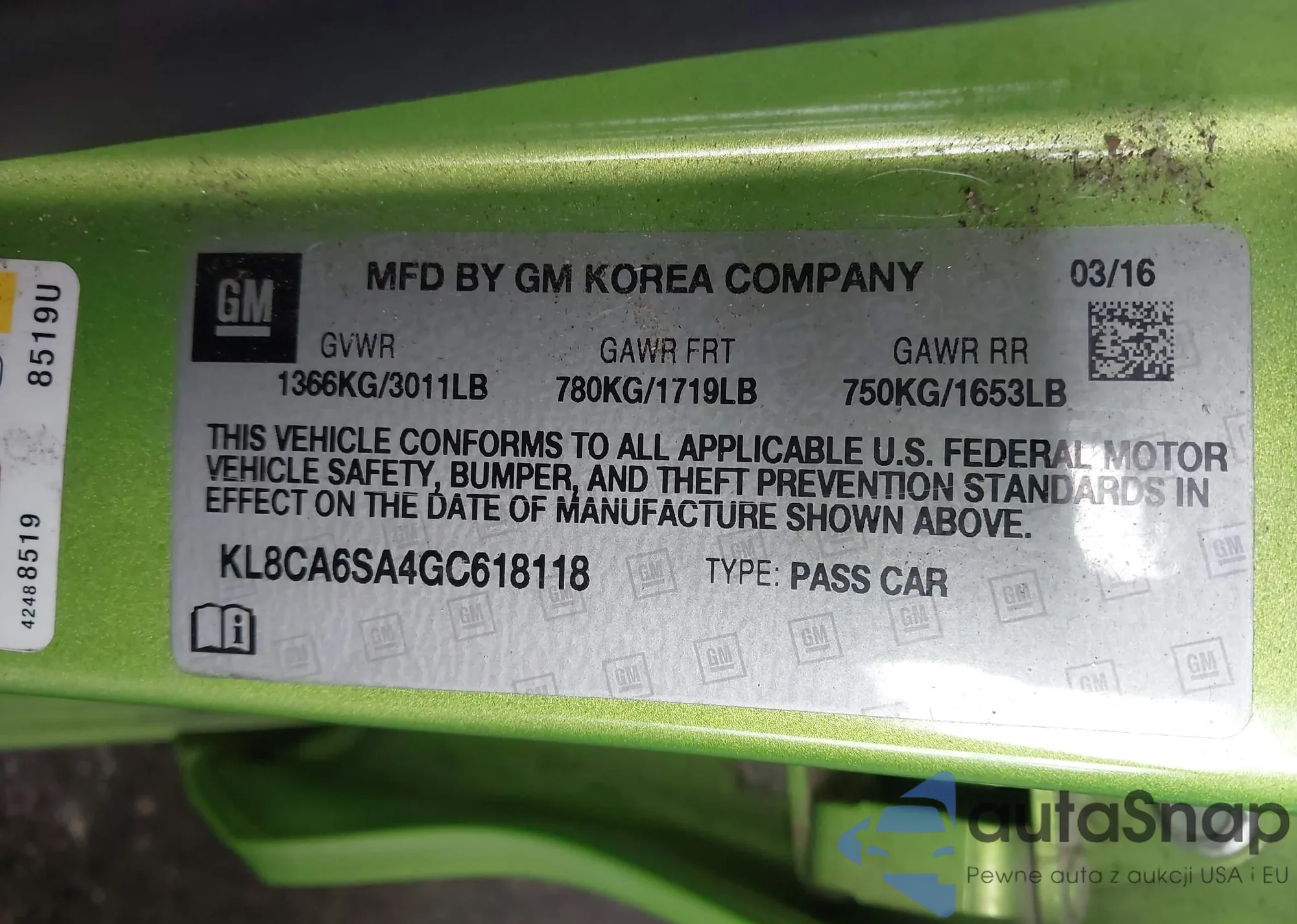 • VIN KL8CA6SA4GC618118