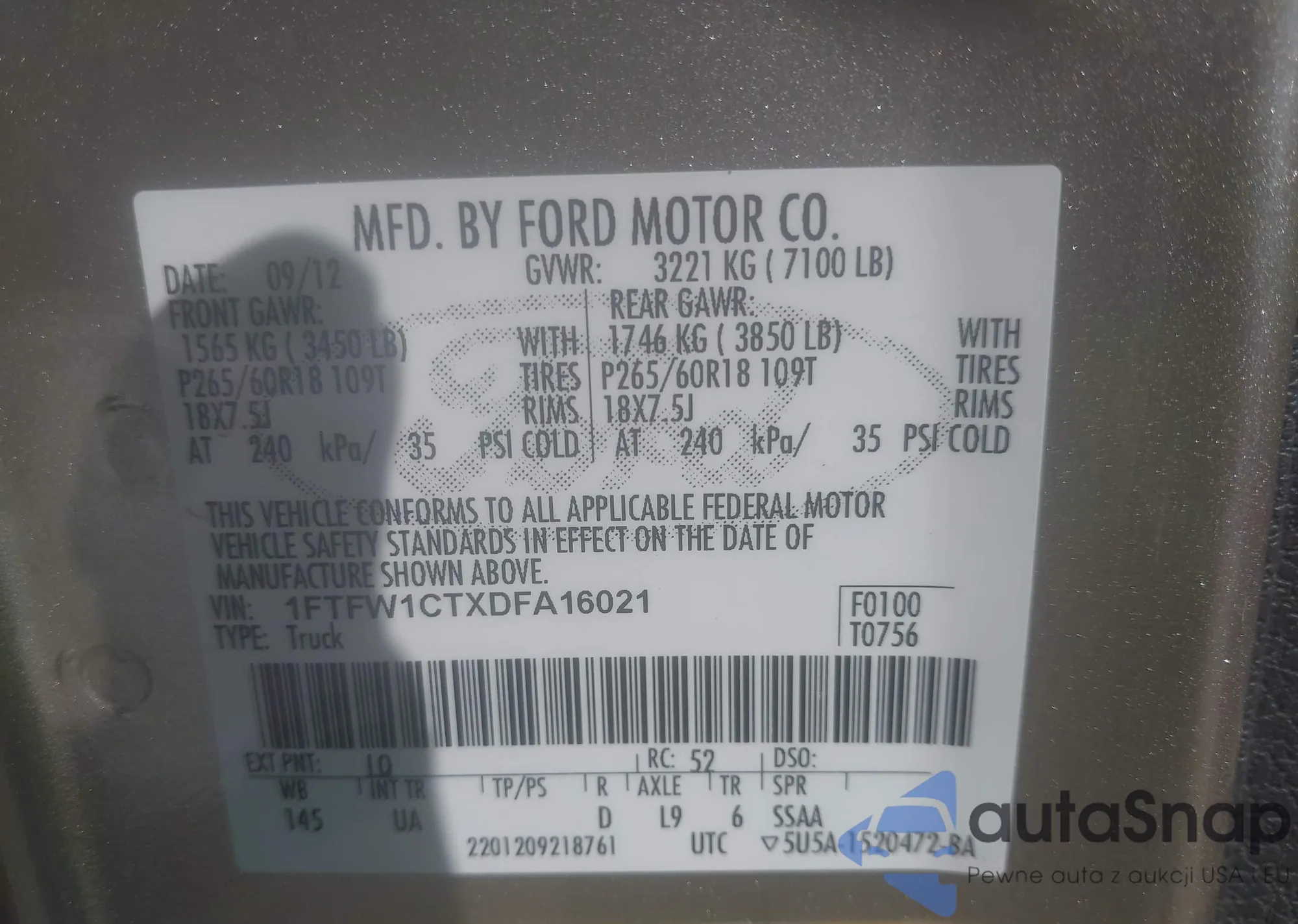 • VIN 1FTFW1CTXDFA16021