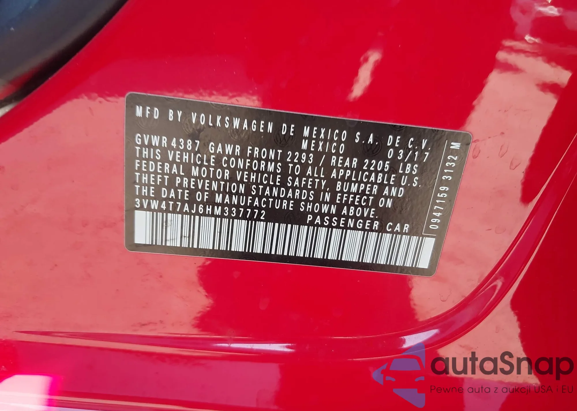• VIN 3VW4T7AJ6HM337772