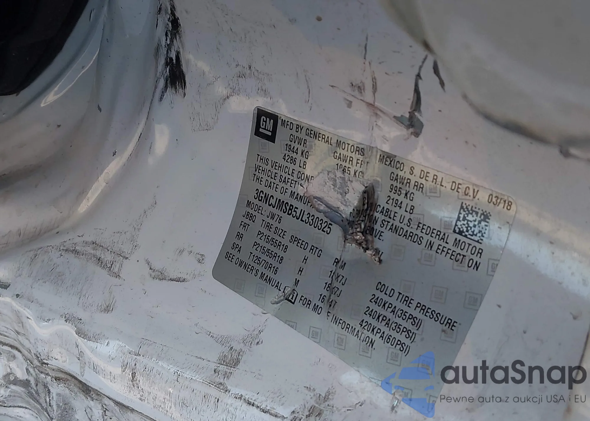 • VIN 3GNCJMSB5JL330325
