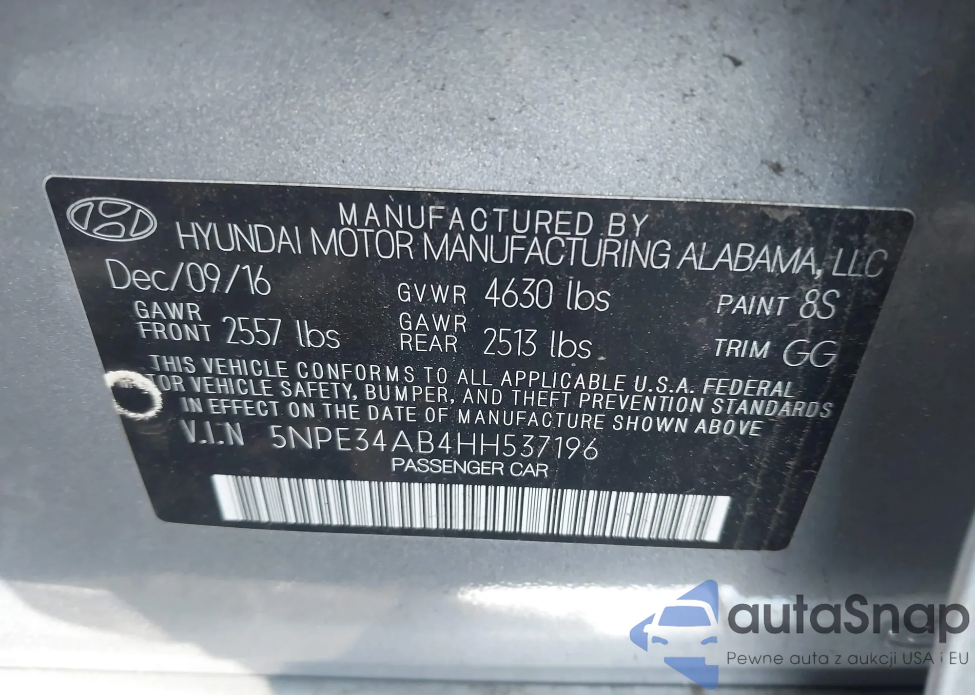 • VIN 5NPE34AB4HH537196
