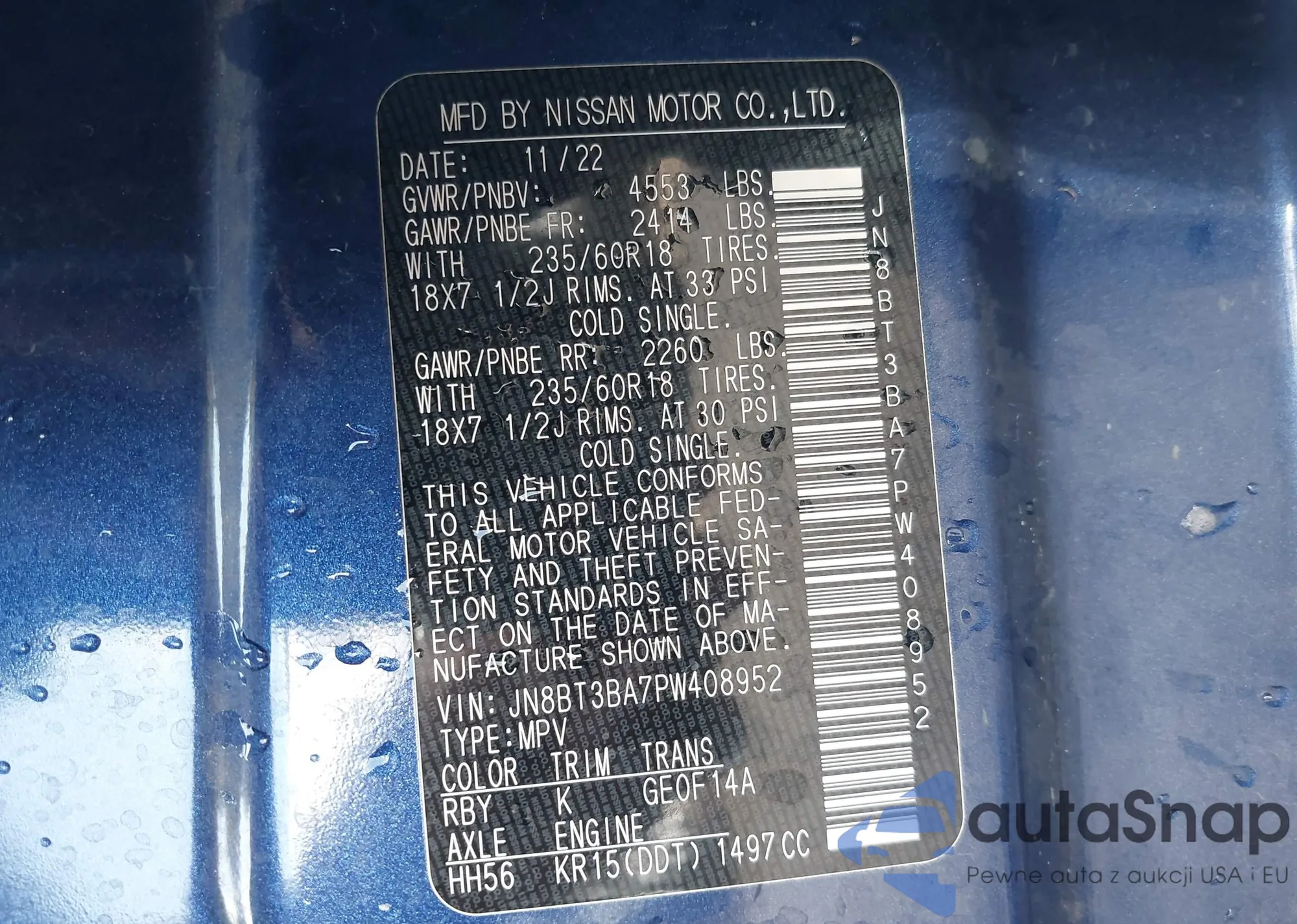 LOT: 42961091 VIN: JN8BT3BA7PW408952