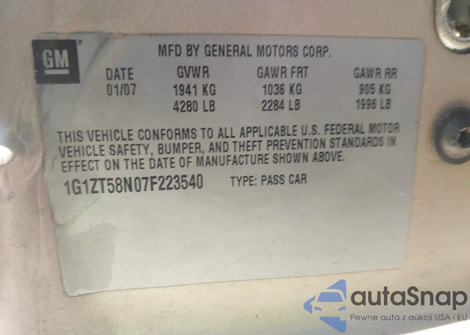 LOT: 43039302 VIN: 1G4CW53L1P1615395