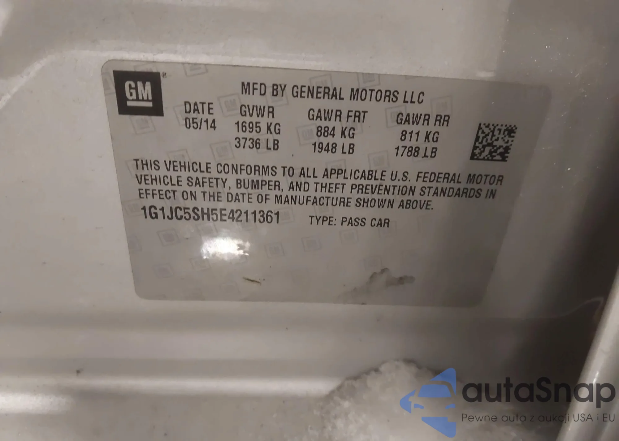 LOT: 43838208 VIN: 1G1JC5SH5E4211361
