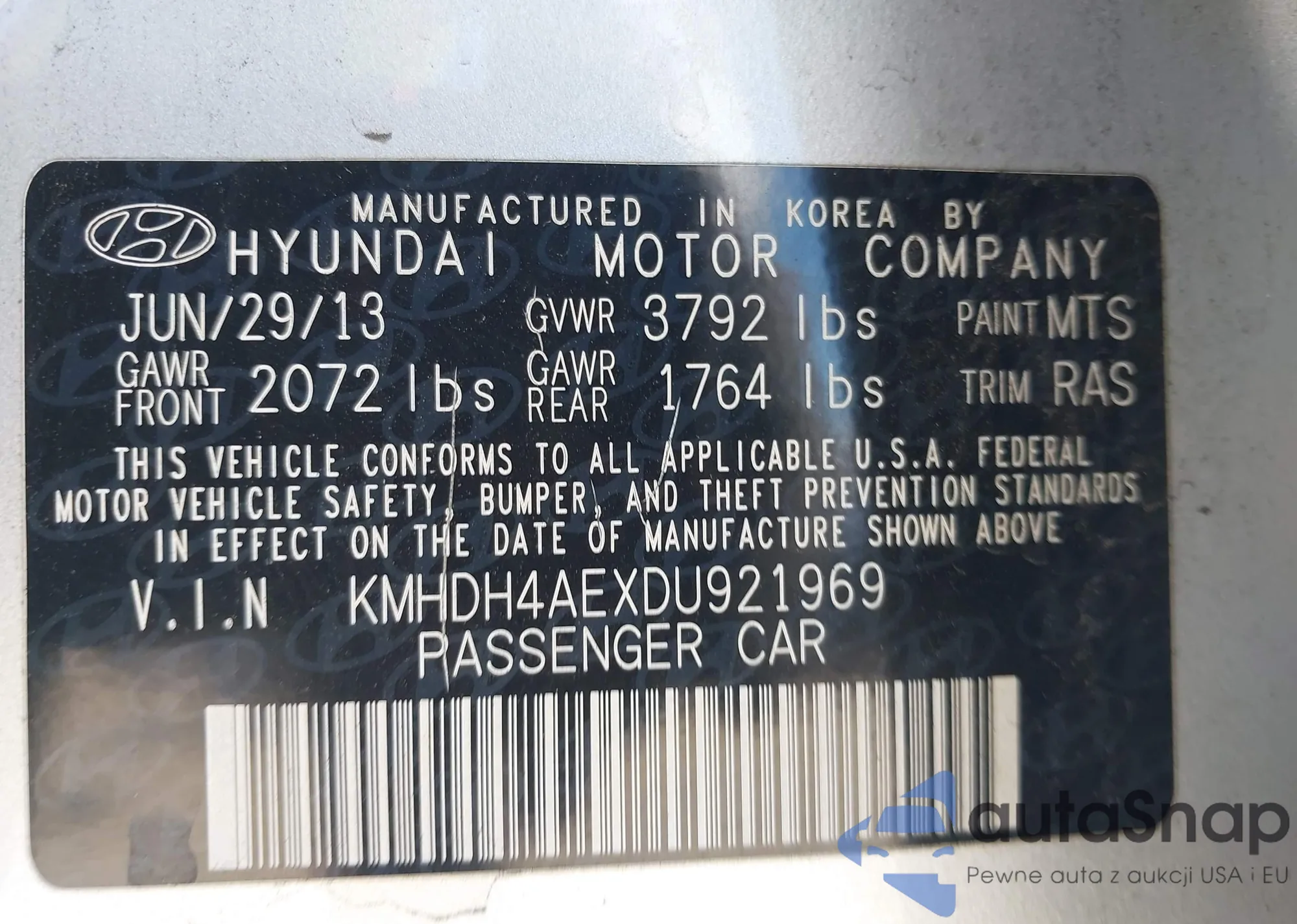 • VIN KMHDH4AEXDU921969