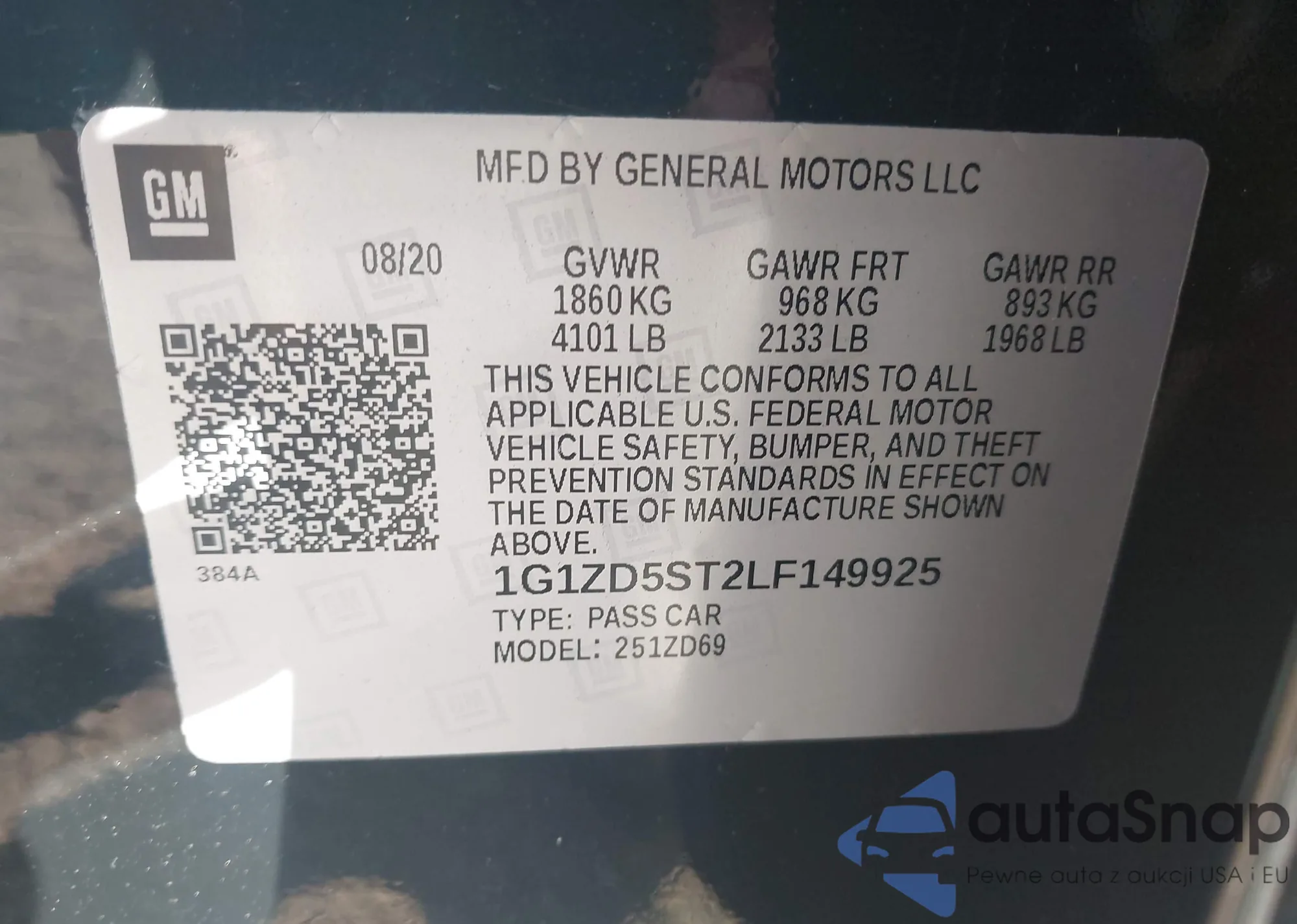 • VIN 1G1ZD5ST2LF149925