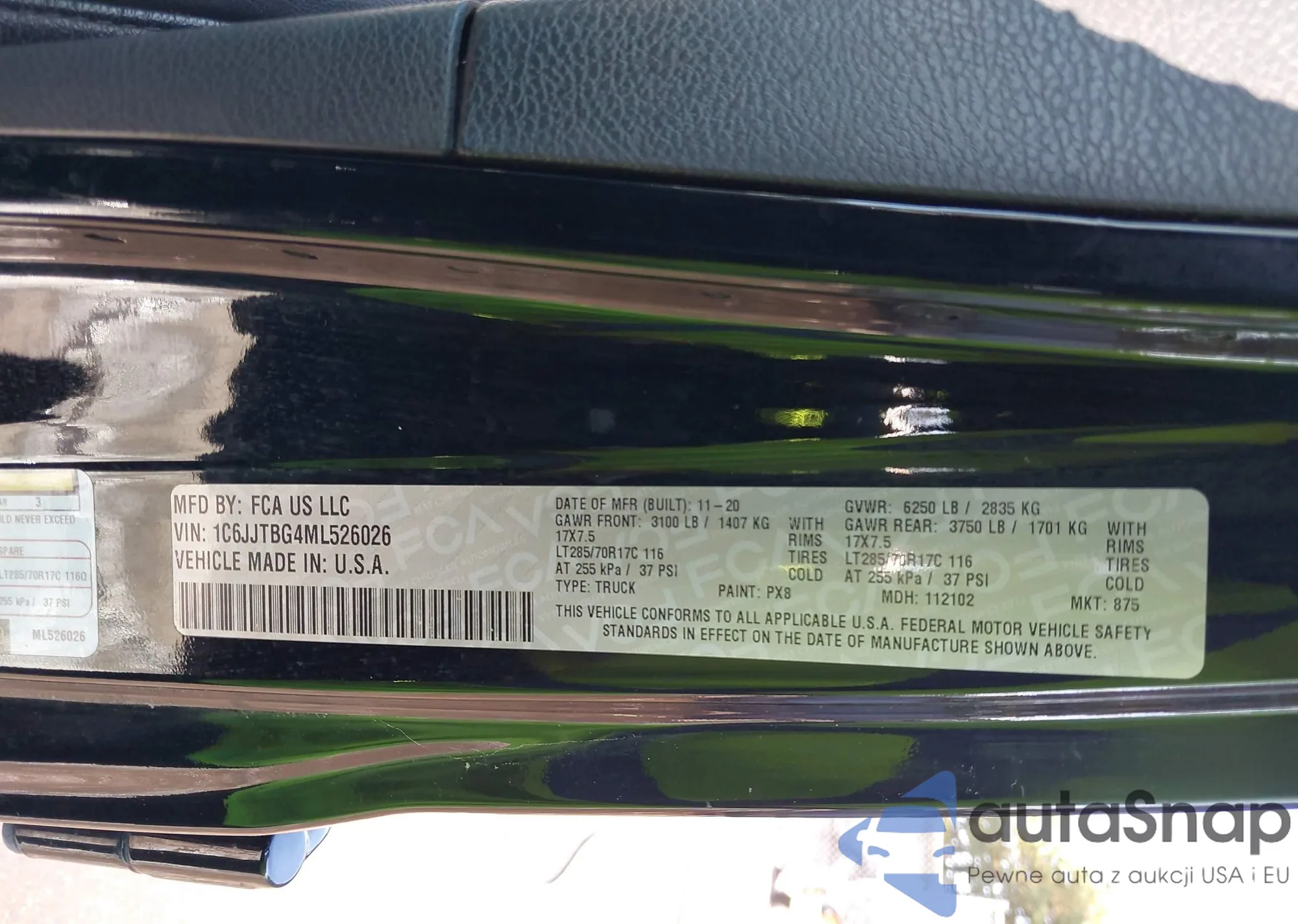 • VIN 1C6JJTBG4ML526026