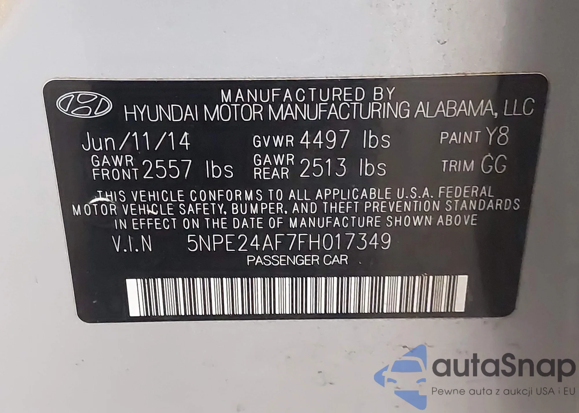 • VIN 5NPE34AF6JH711004