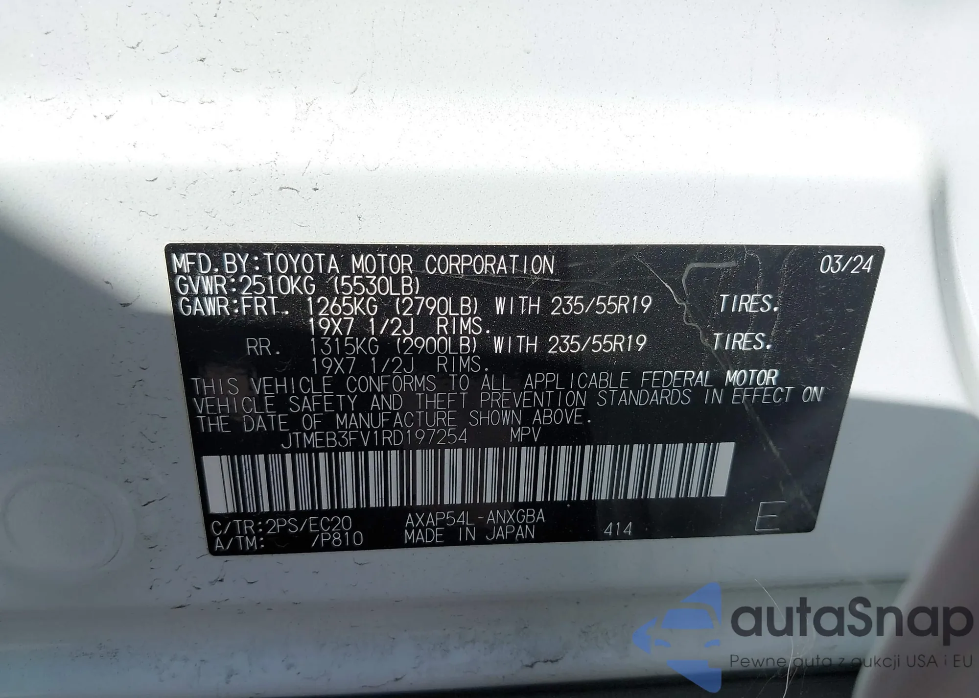 LOT: 43335458 VIN: KNDPN3AC1M7890984