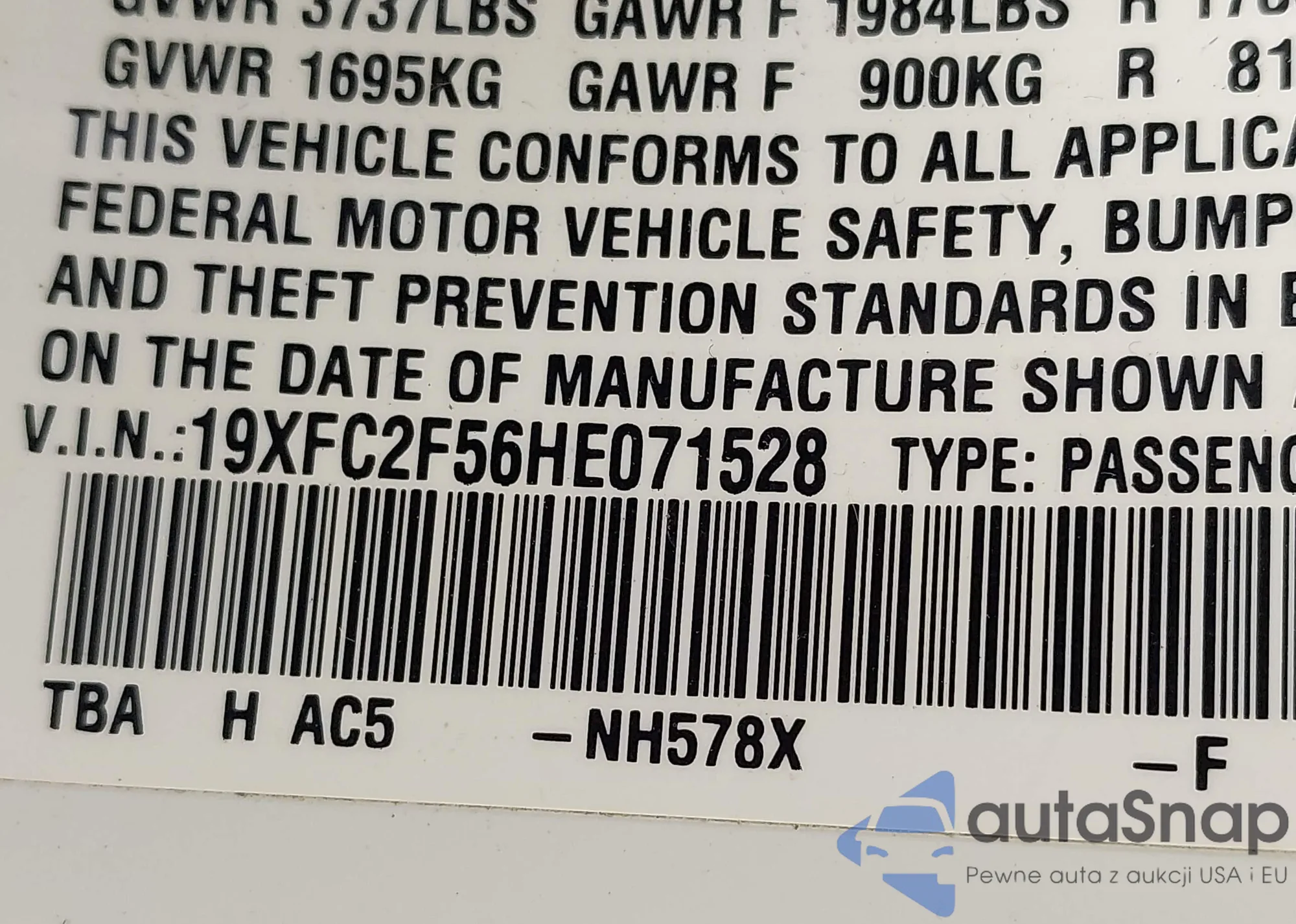 • VIN 19XFC2F56HE071528