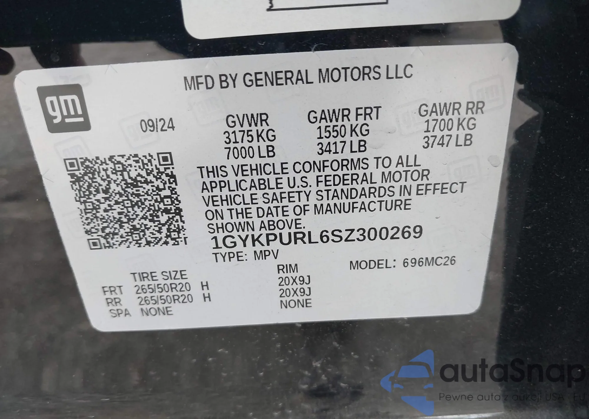 LOT: 43733617 VIN: 1GYKPURL6SZ300269