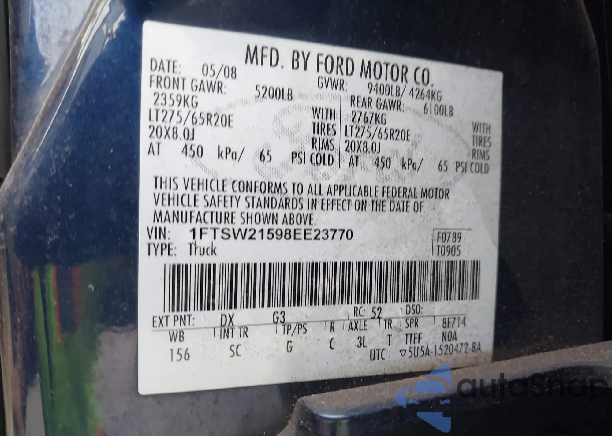 LOT: 42778809 VIN: 1FTSW21598EE23770