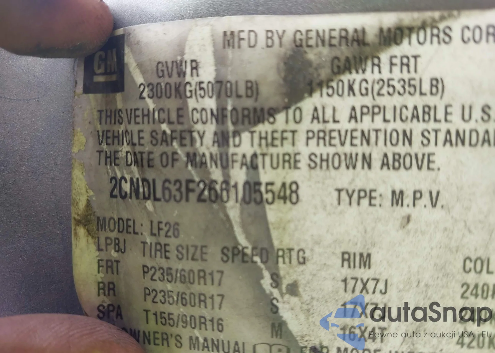 • VIN KL4AMDSL8RB014991