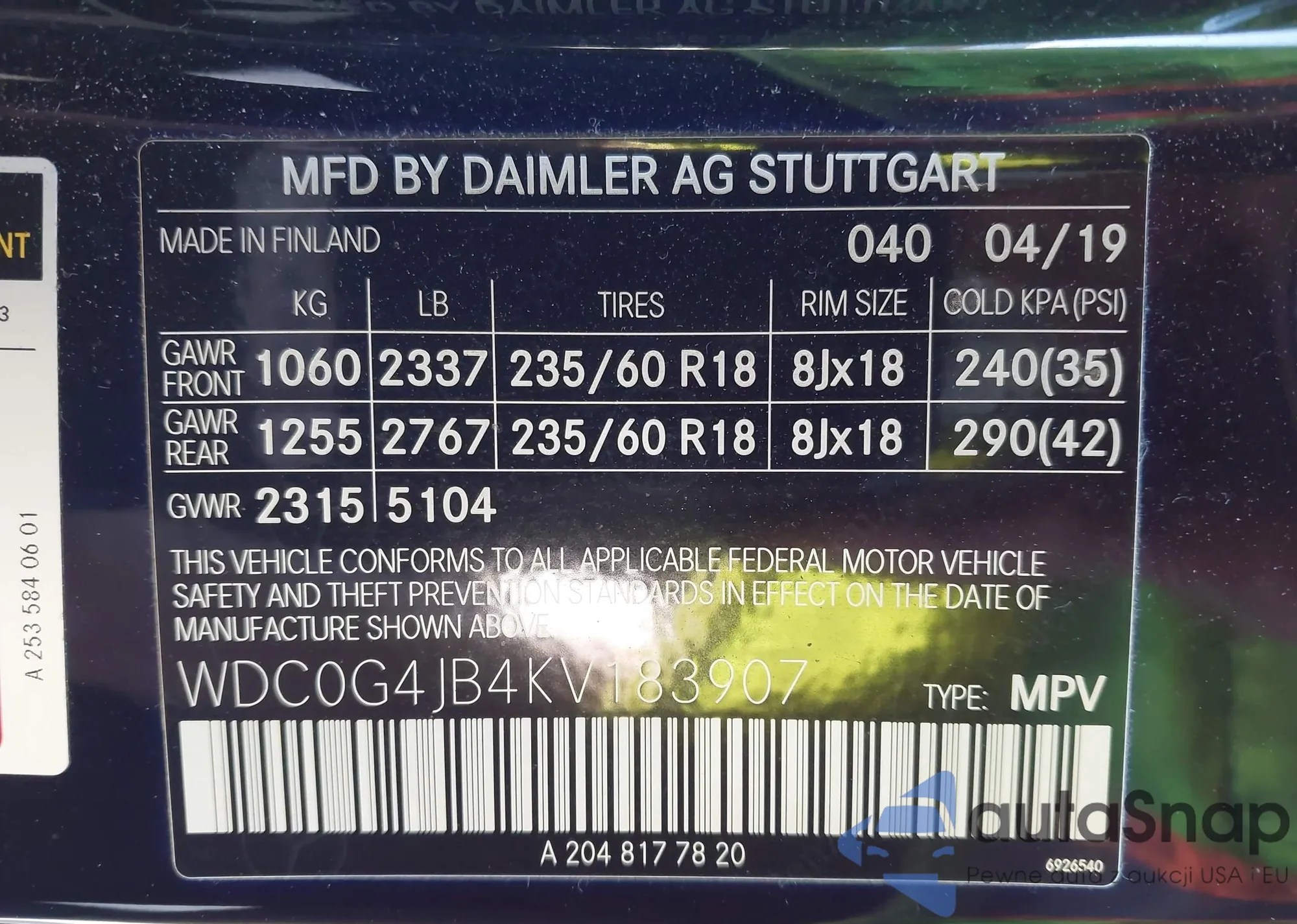 • VIN WDC0G4JB4KV183907