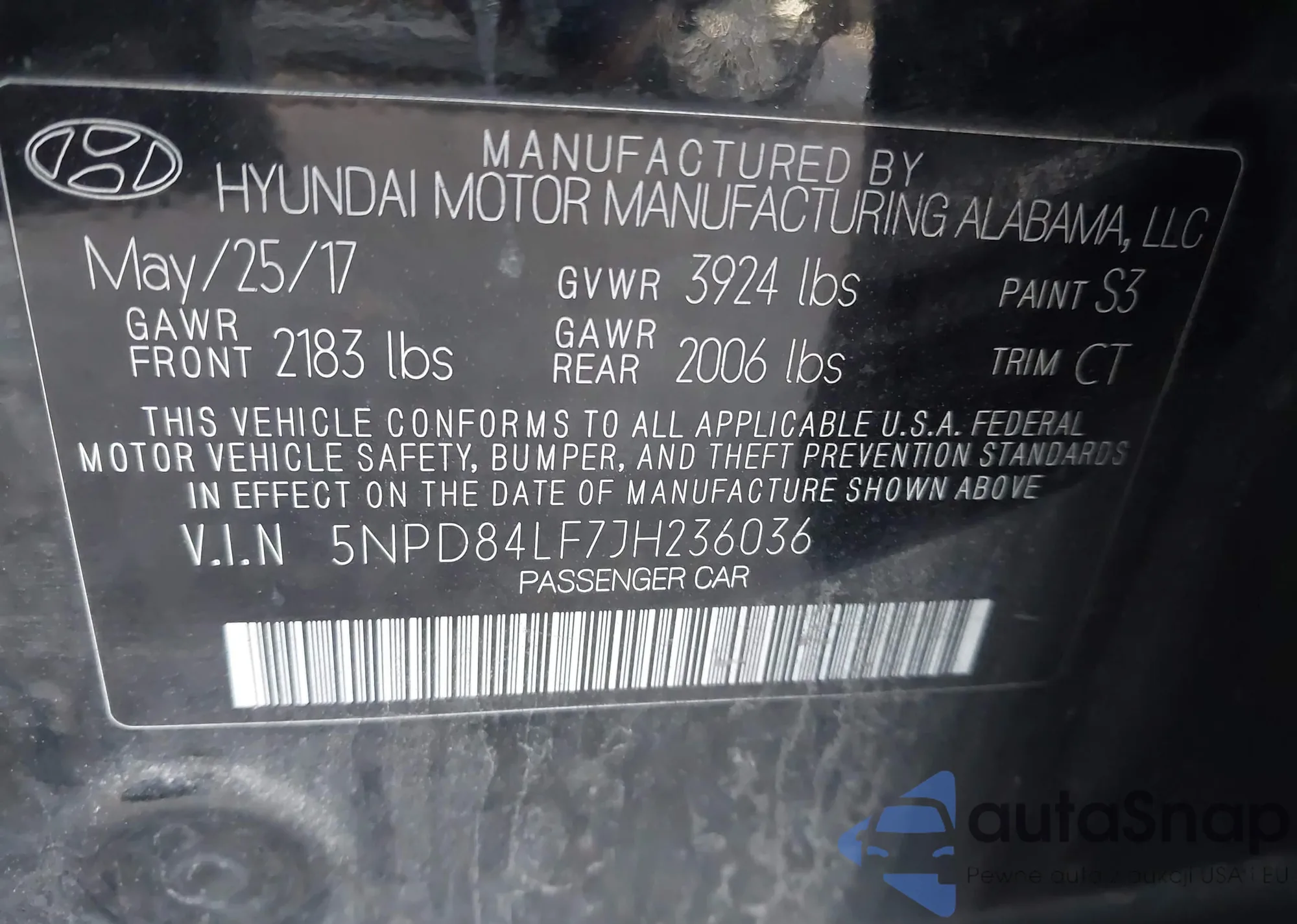 • VIN 5NPD84LF7JH236036