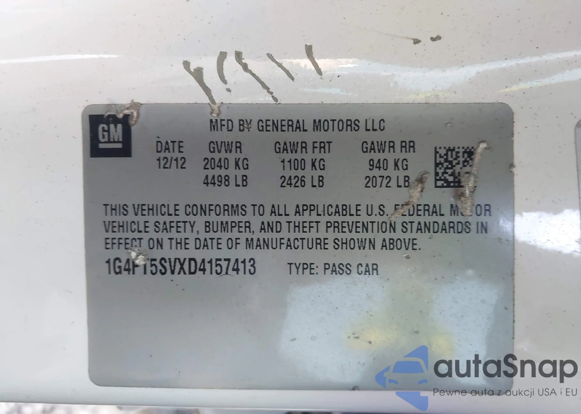 LOT: 43649311 VIN: 1G4PT5SVXD4157413