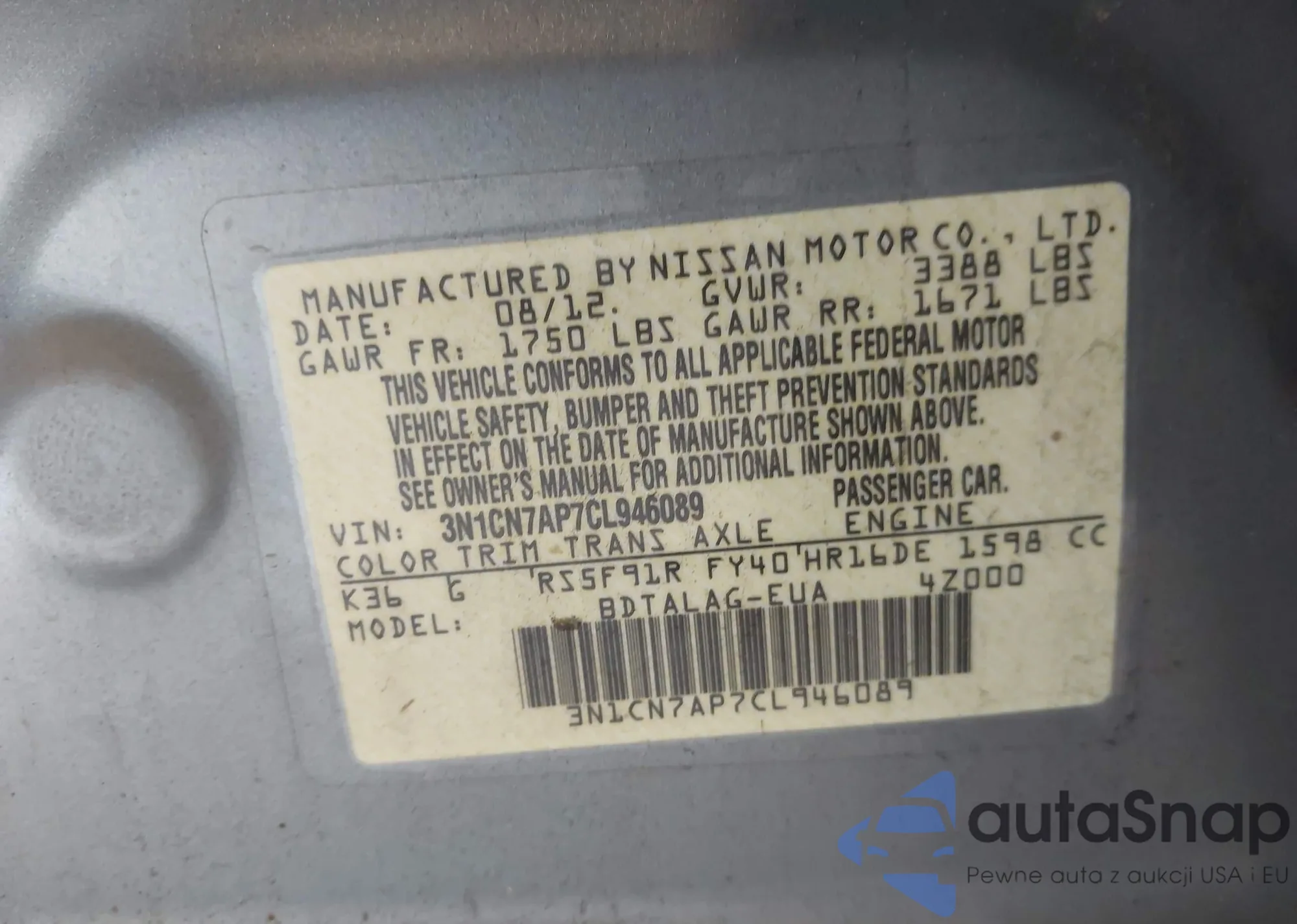 • VIN 3N1CN7AP7CL946089