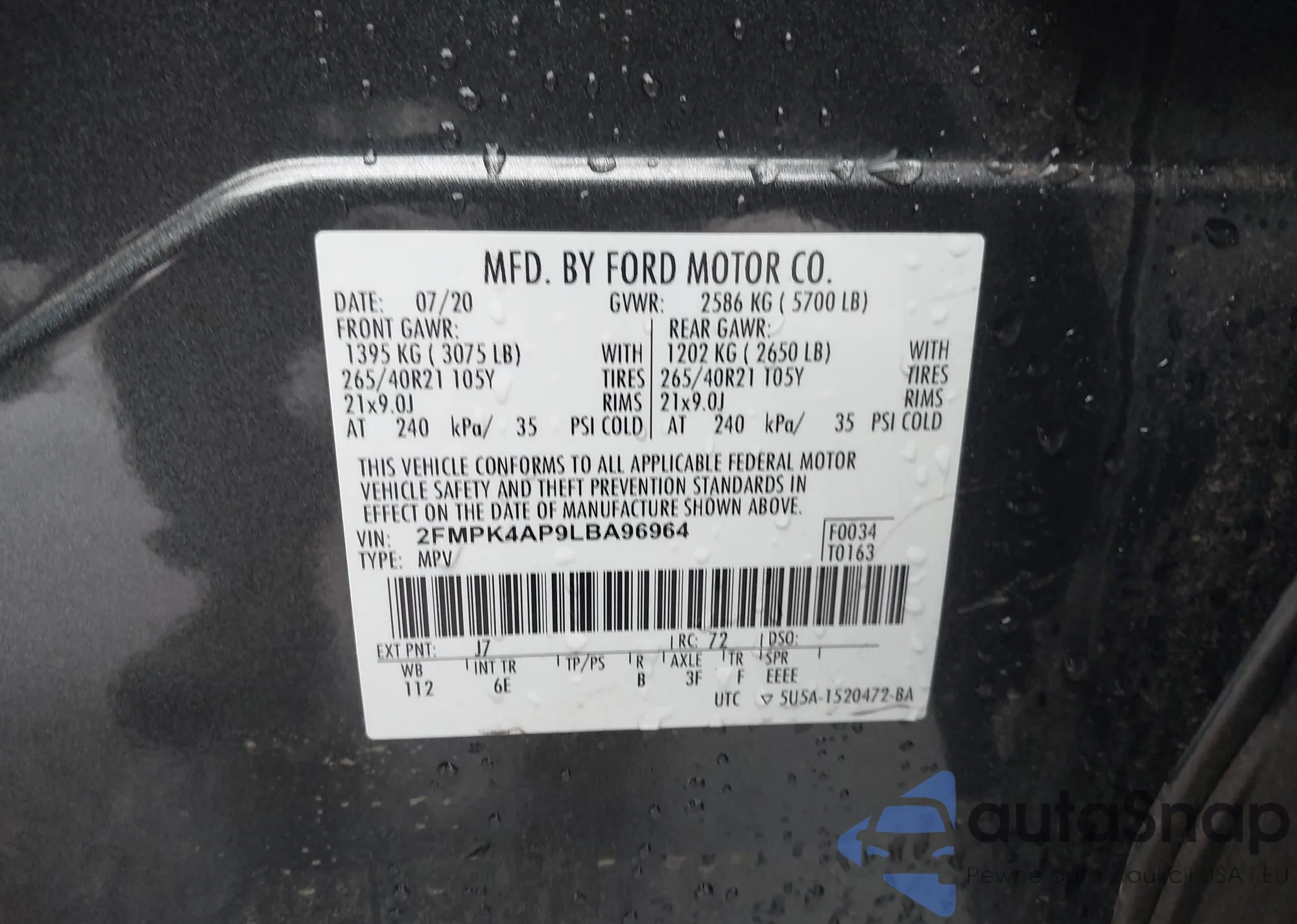 • VIN 2FMPK4AP9LBA96964