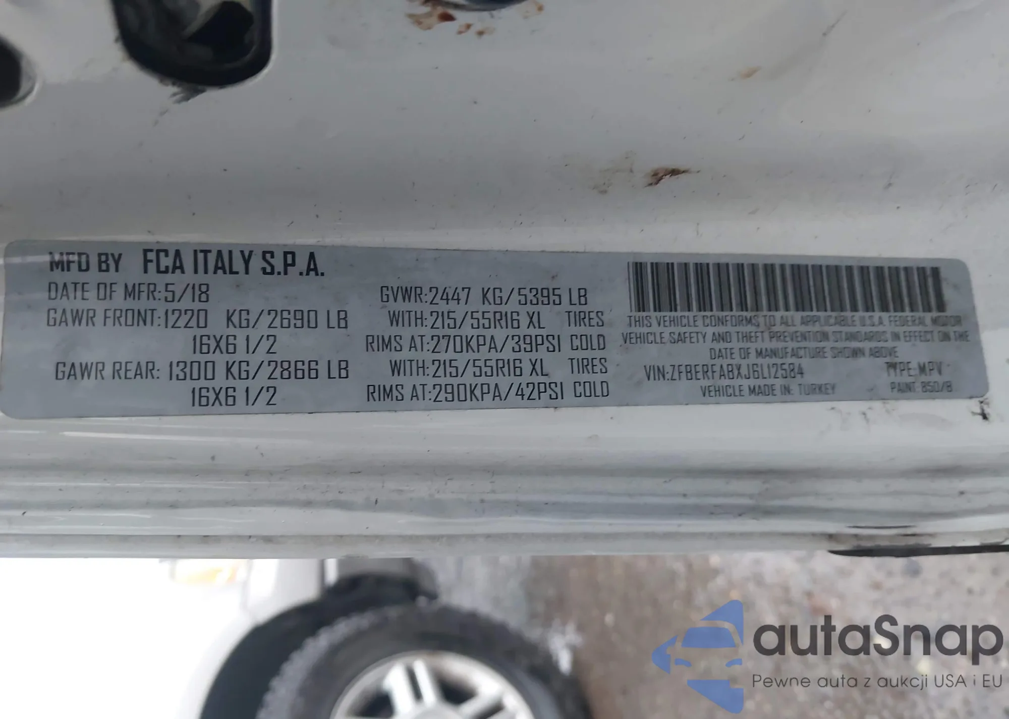 LOT: 43714809 VIN: ZFBERFABXJ6L12584