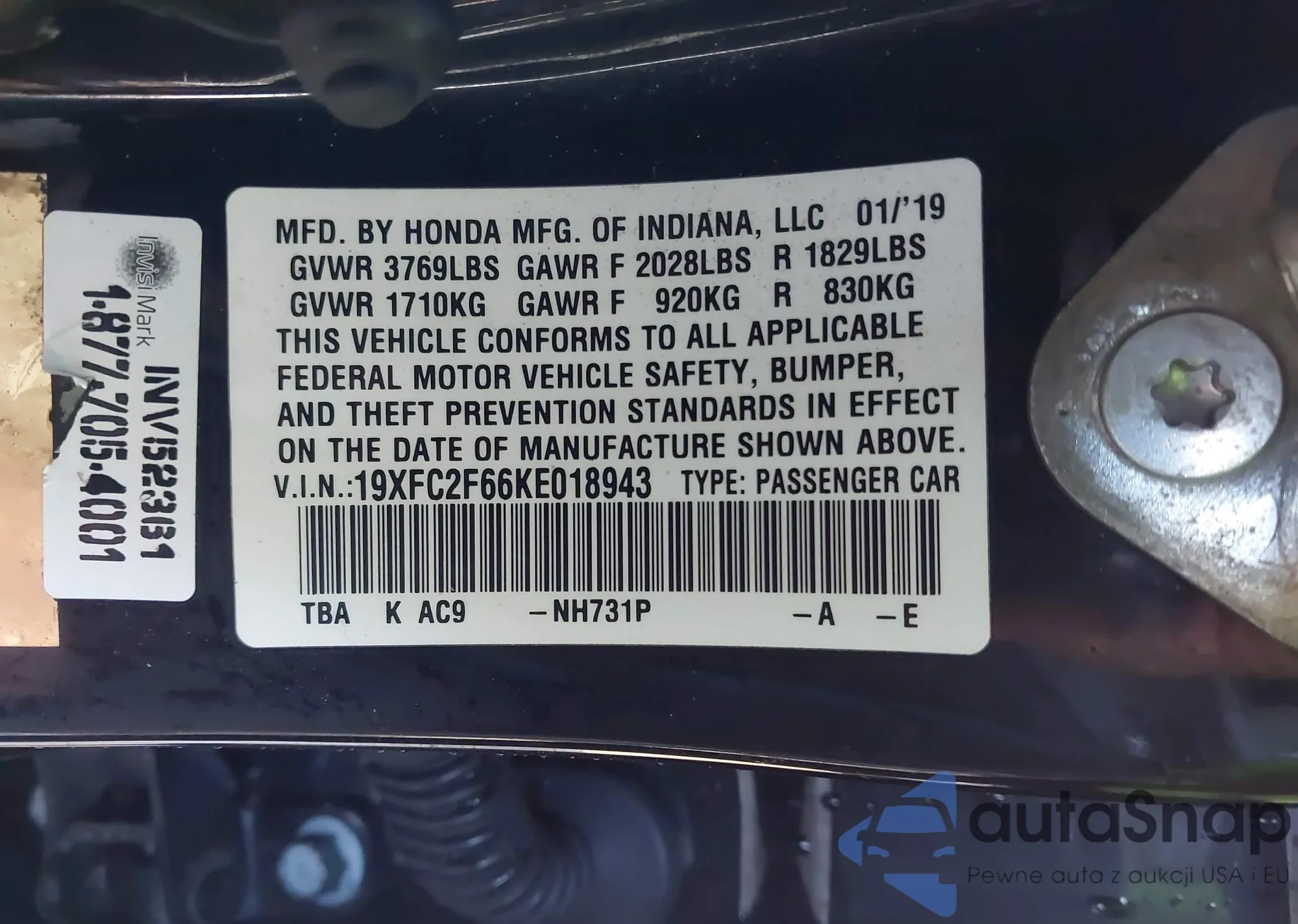 • VIN 19XFC2F66KE018943