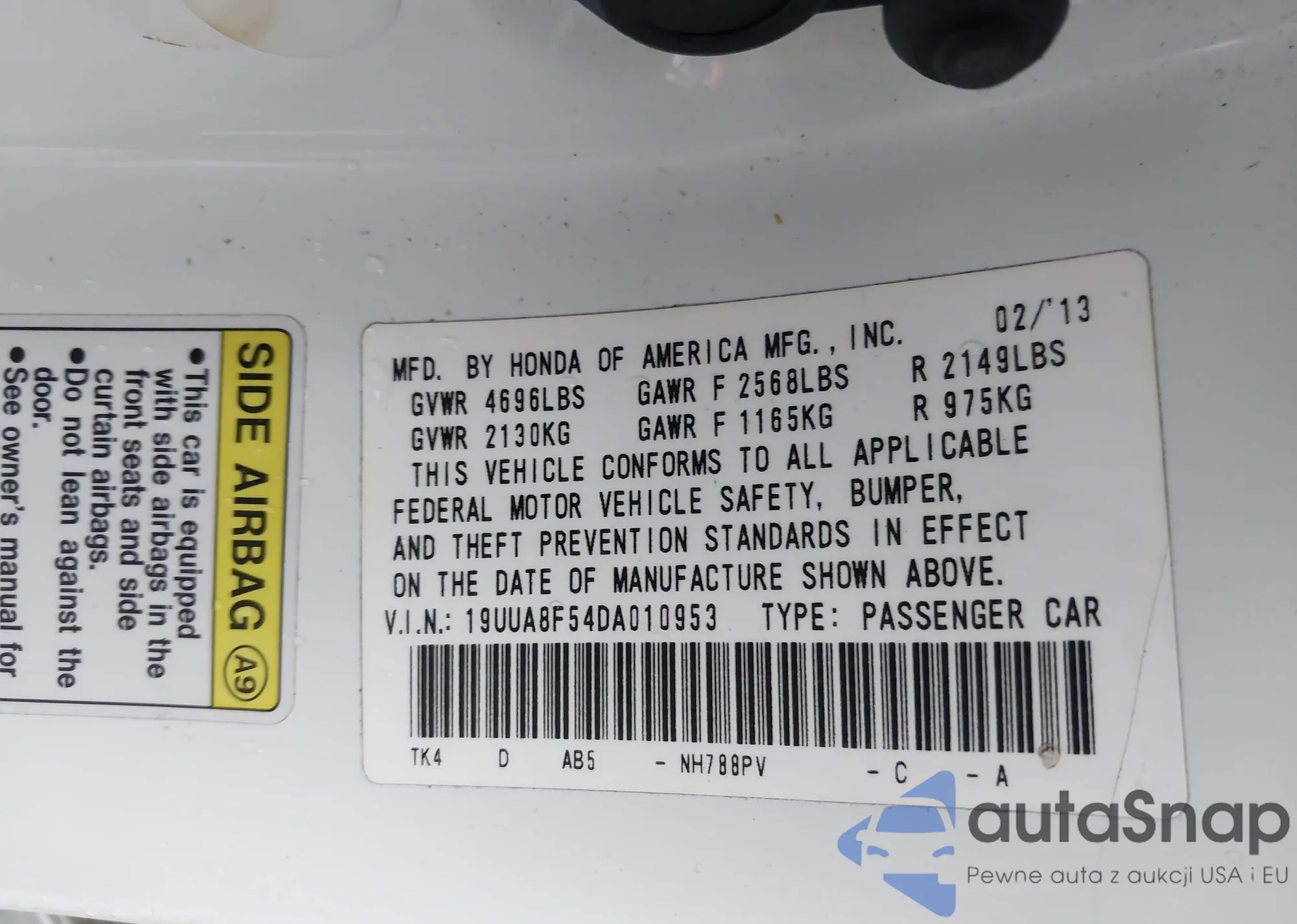 • VIN 19UUA8F54DA010953