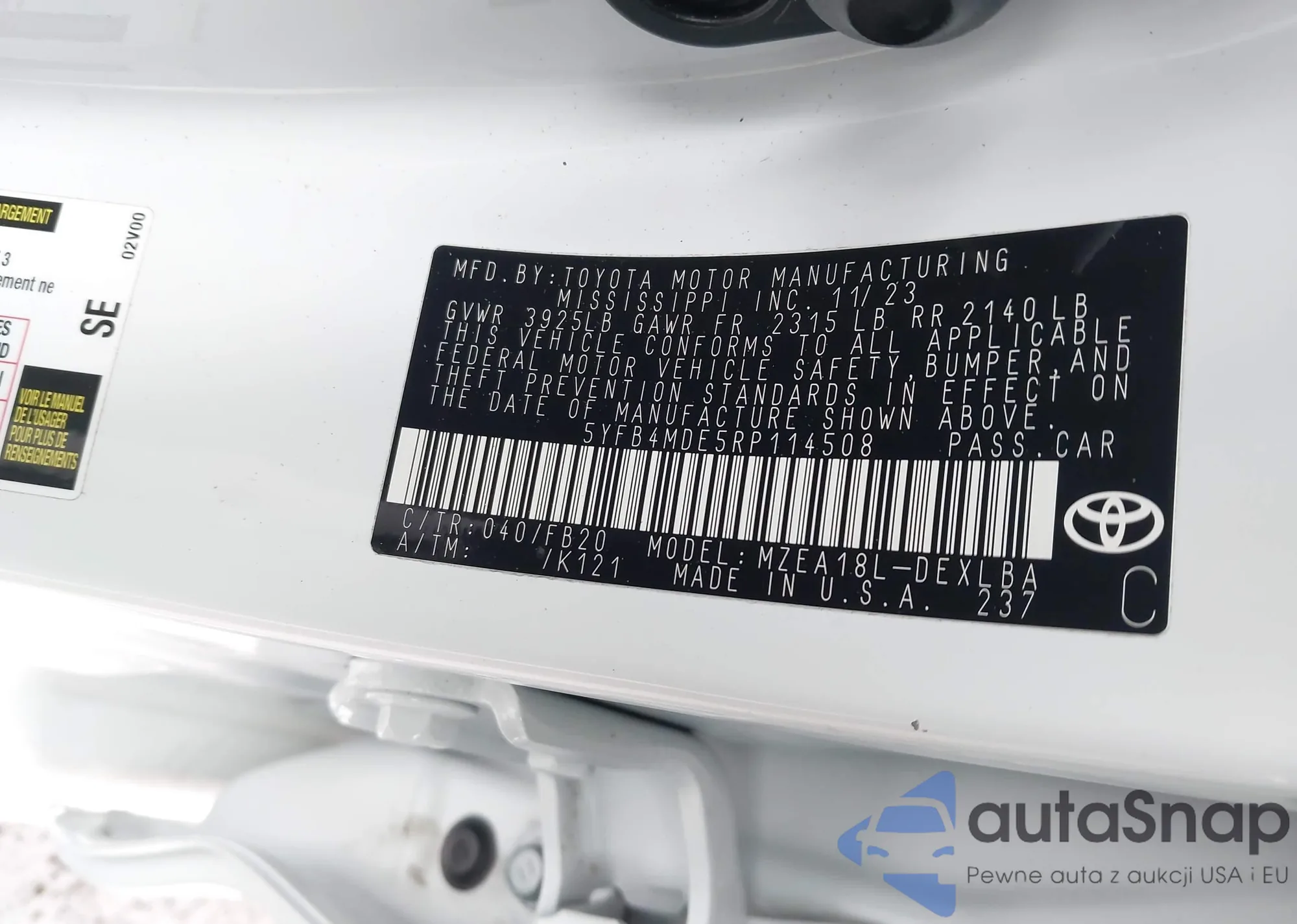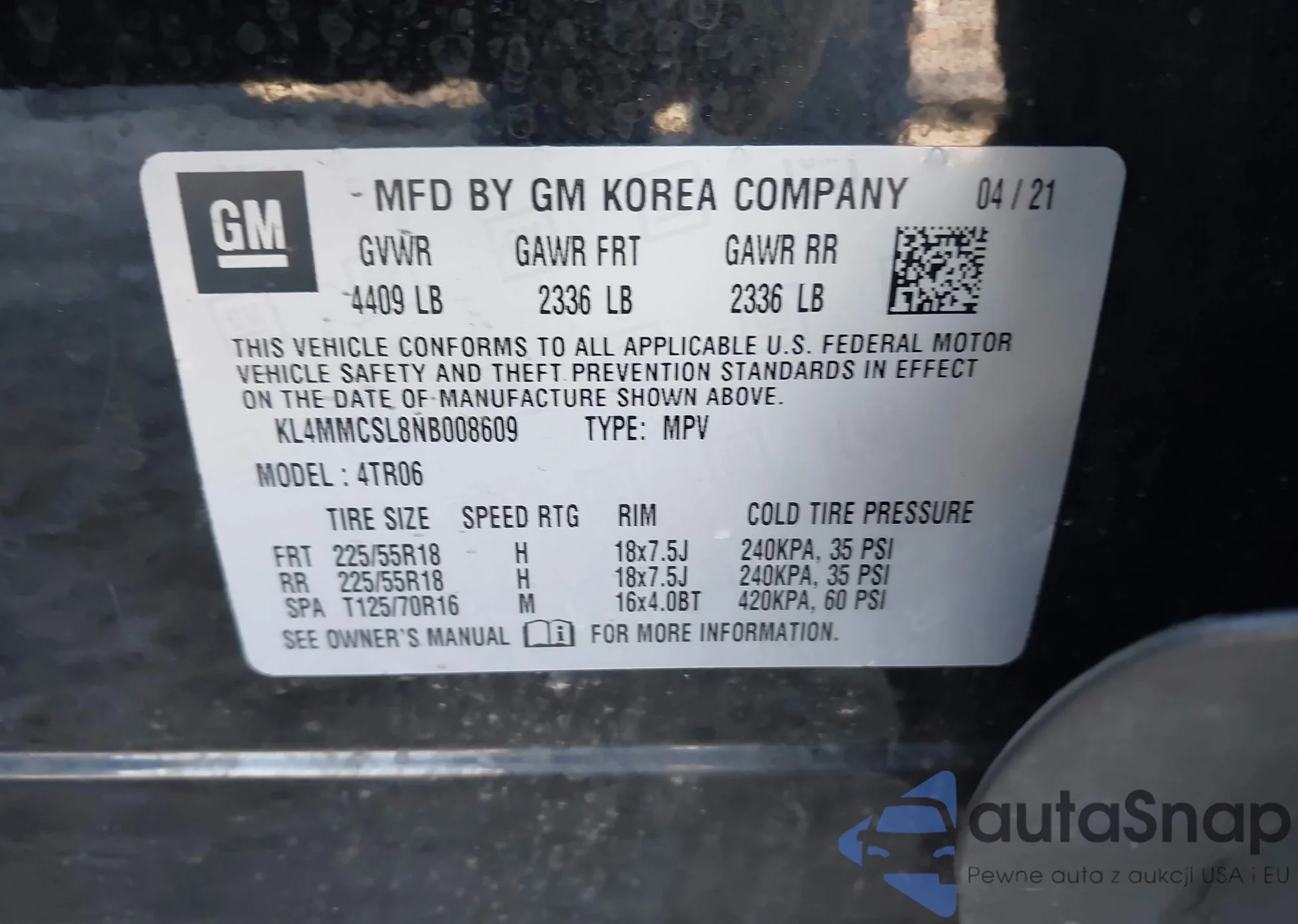 • VIN KL4MMCSL8NB008609
