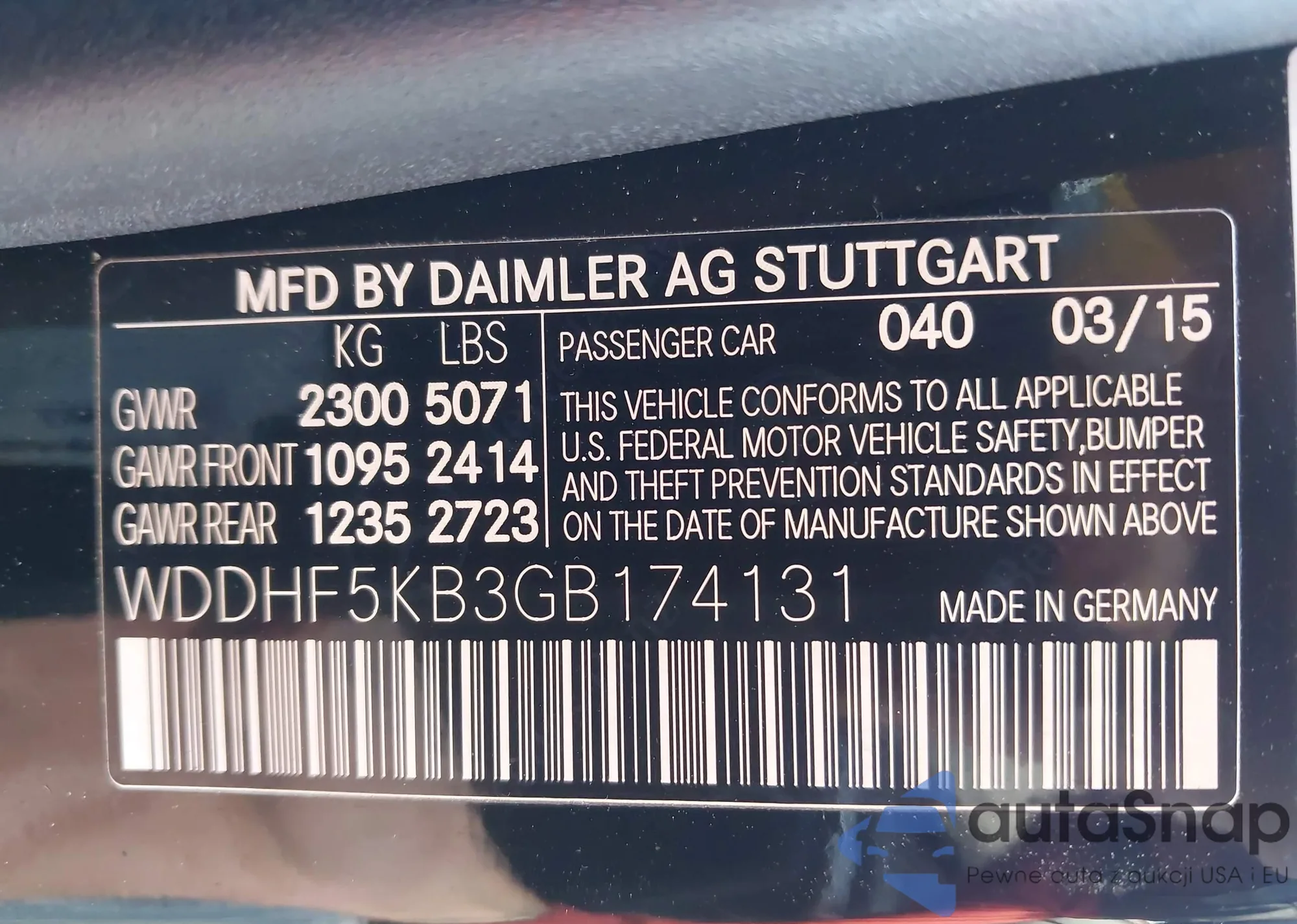 LOT: 43204260 VIN: WP1AF2A28ELA38904