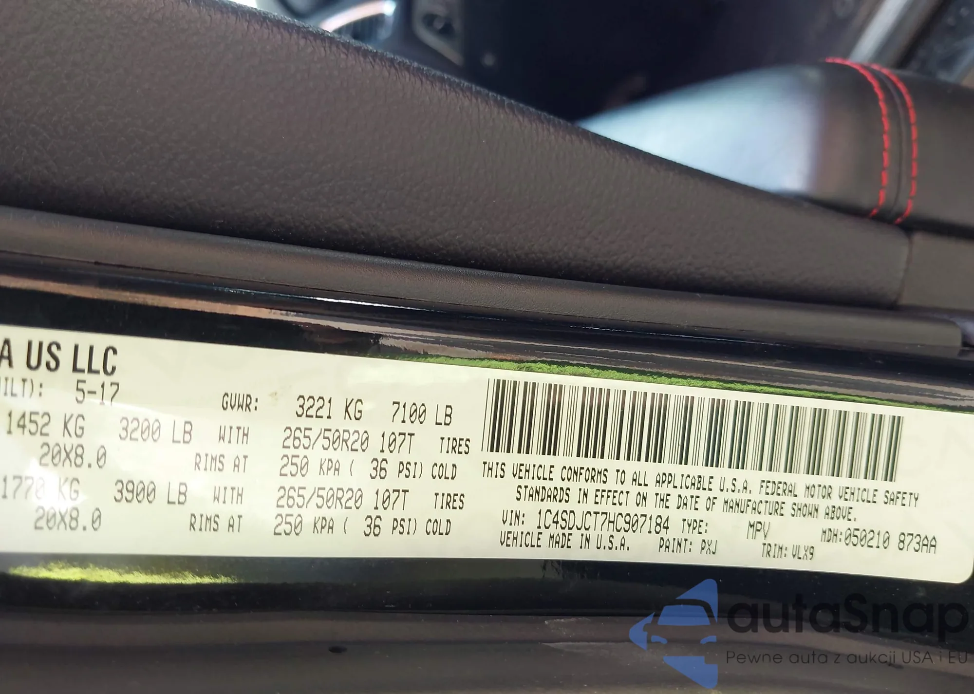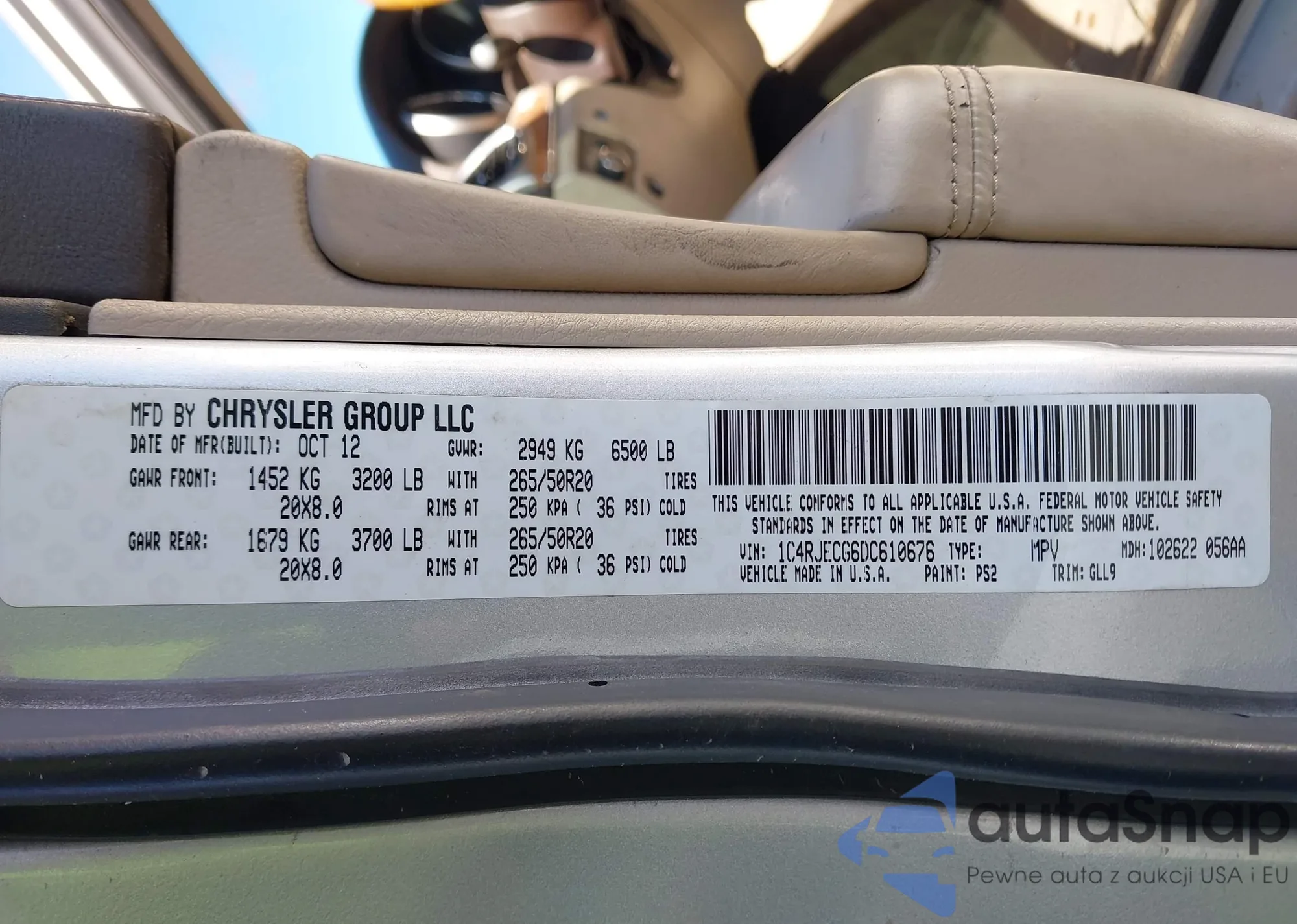 • VIN 1C4HJXDG0KW530193