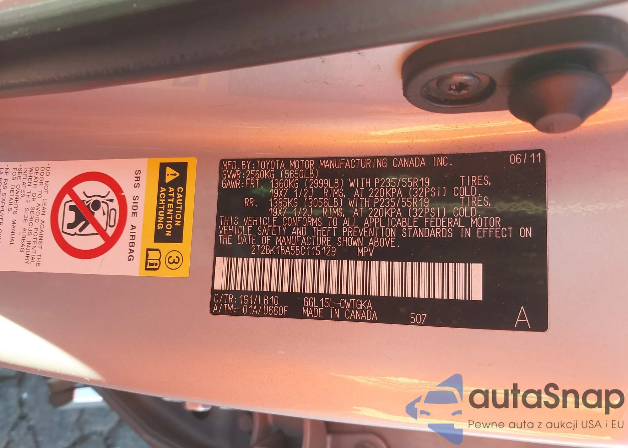 LOT: 43603932 VIN: 2T2BK1BA5BC115129