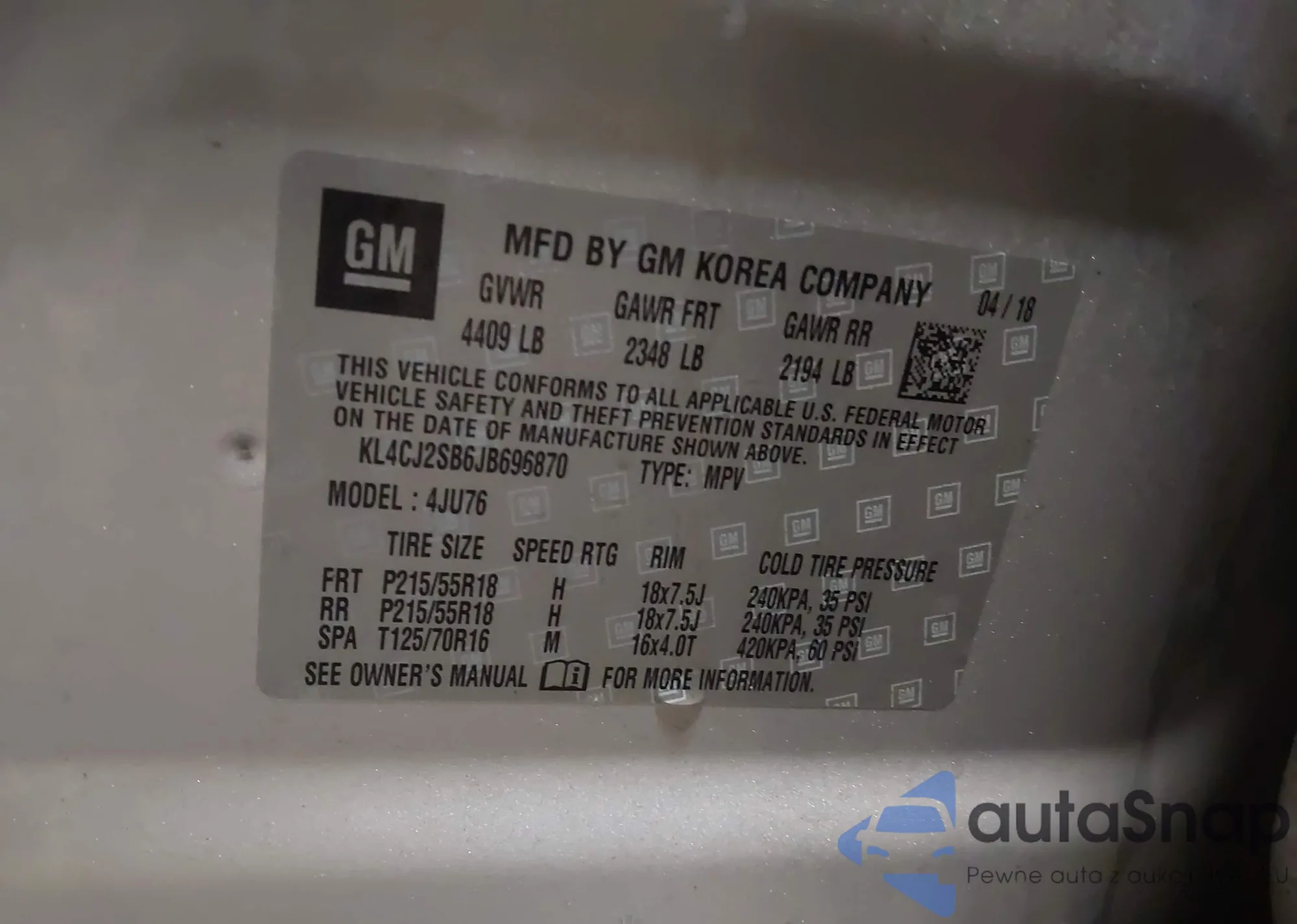 • VIN KL4CJ2SB6JB696870