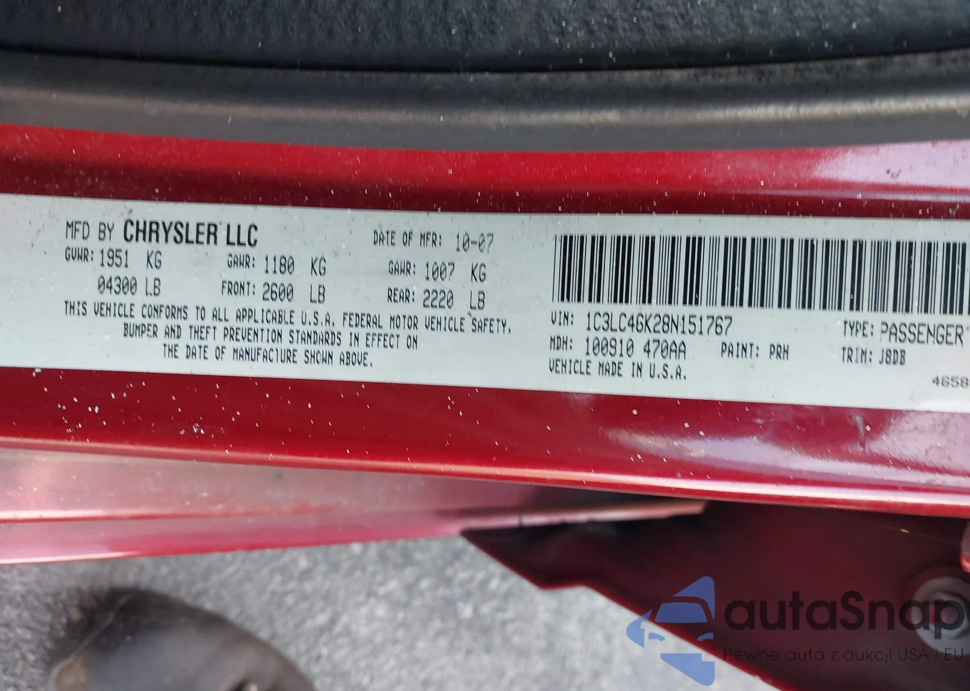 • VIN 2C3CDZAG5JH219801