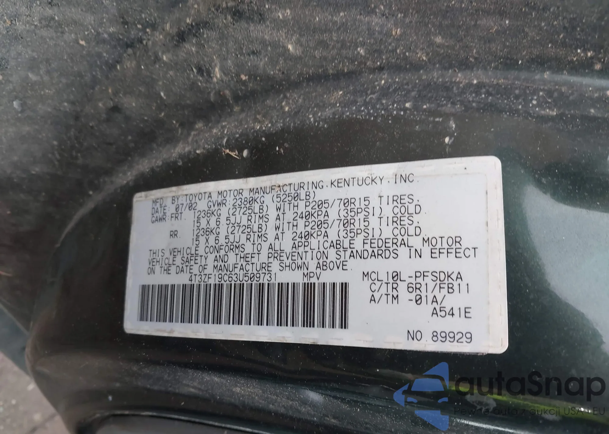 LOT: 43856638 VIN: 4T3ZF19C63U509731