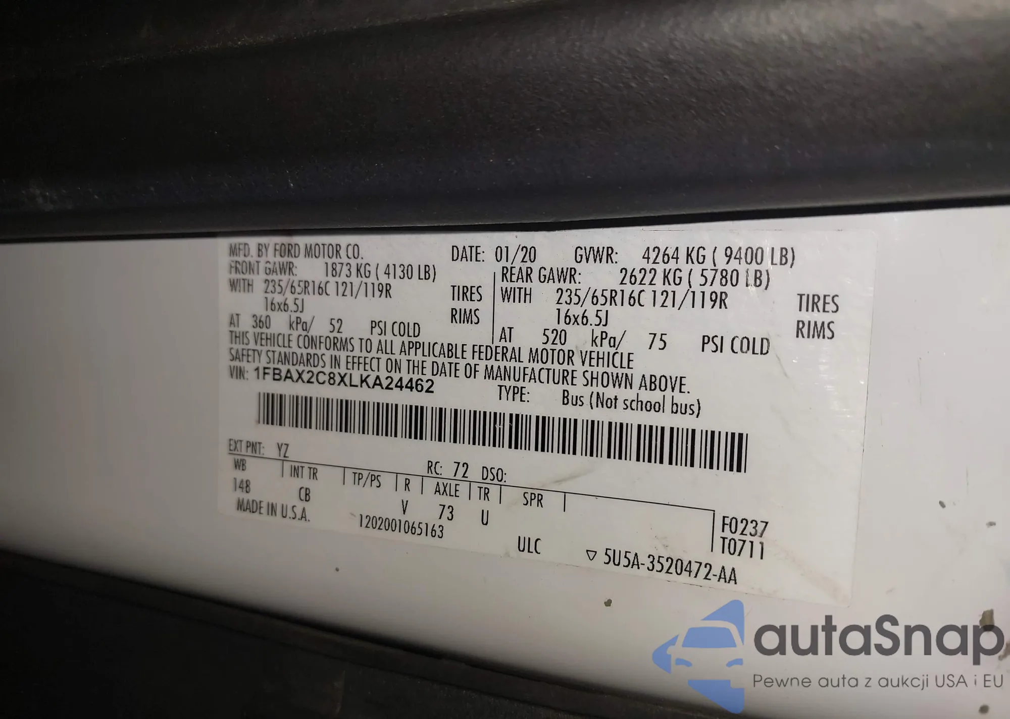 LOT: 43266751 VIN: 1FBAX2C8XLKA24462