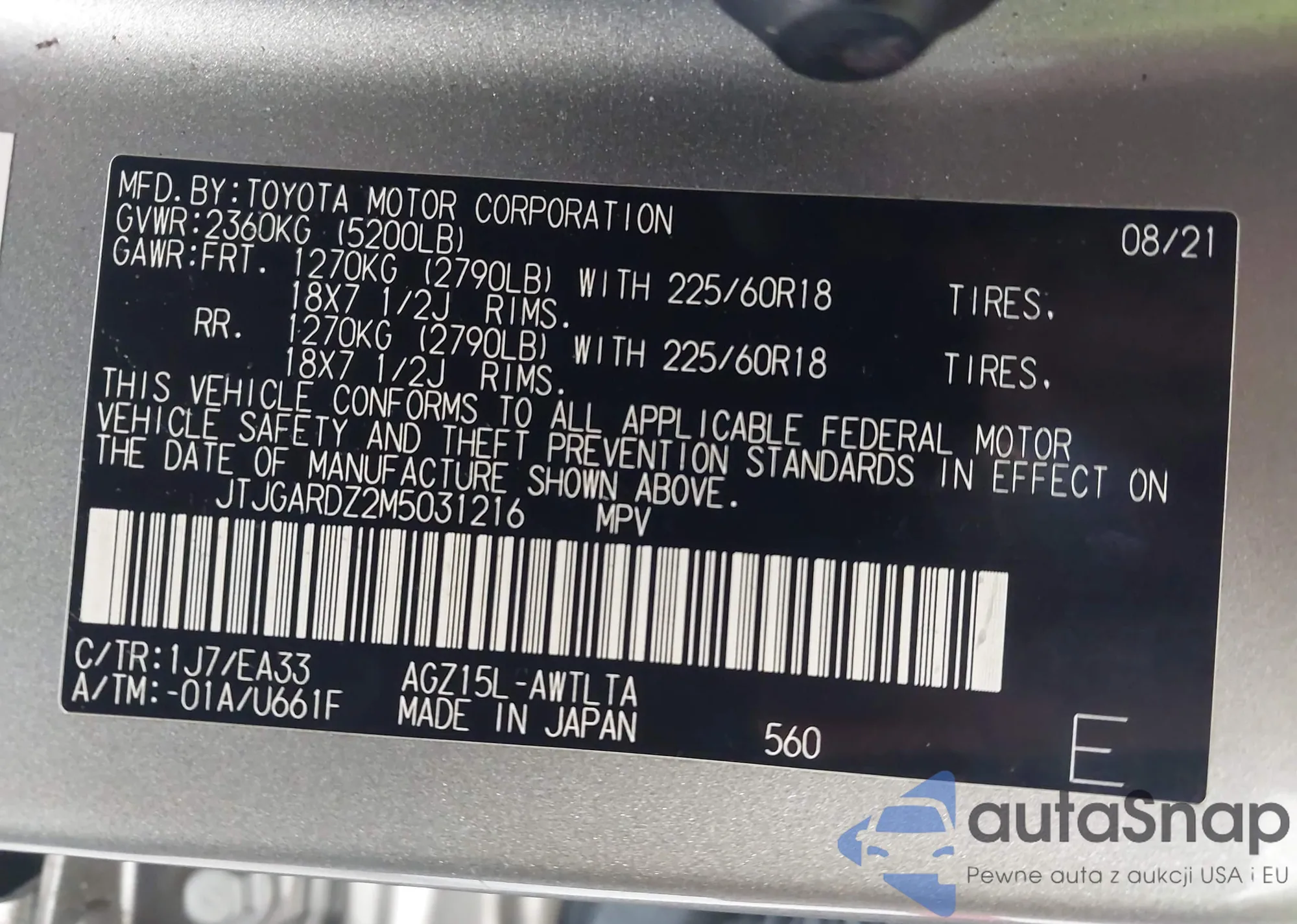 • VIN 4T1BF1FK1FU038405