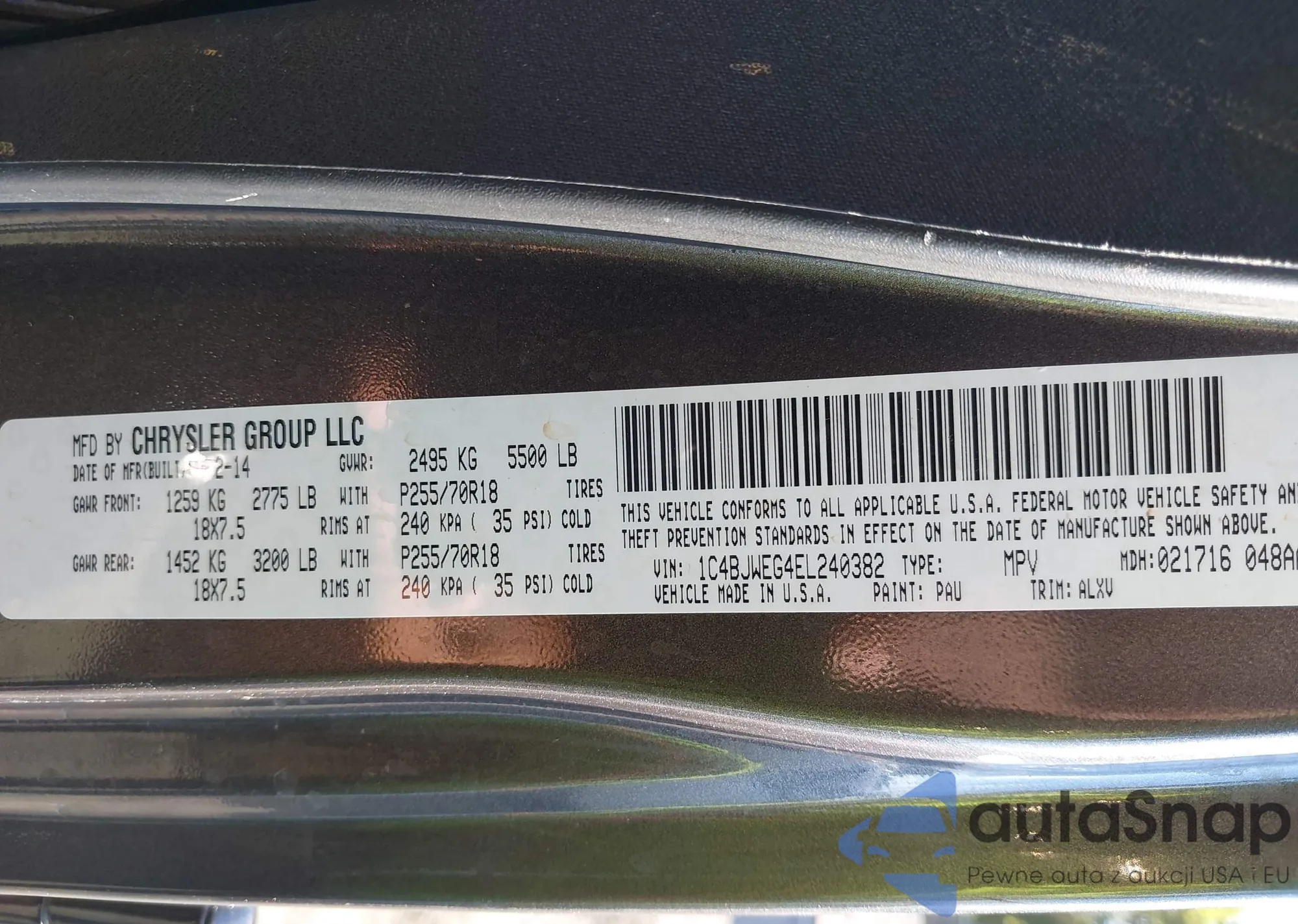 • VIN 1C4BJWEG4EL240382