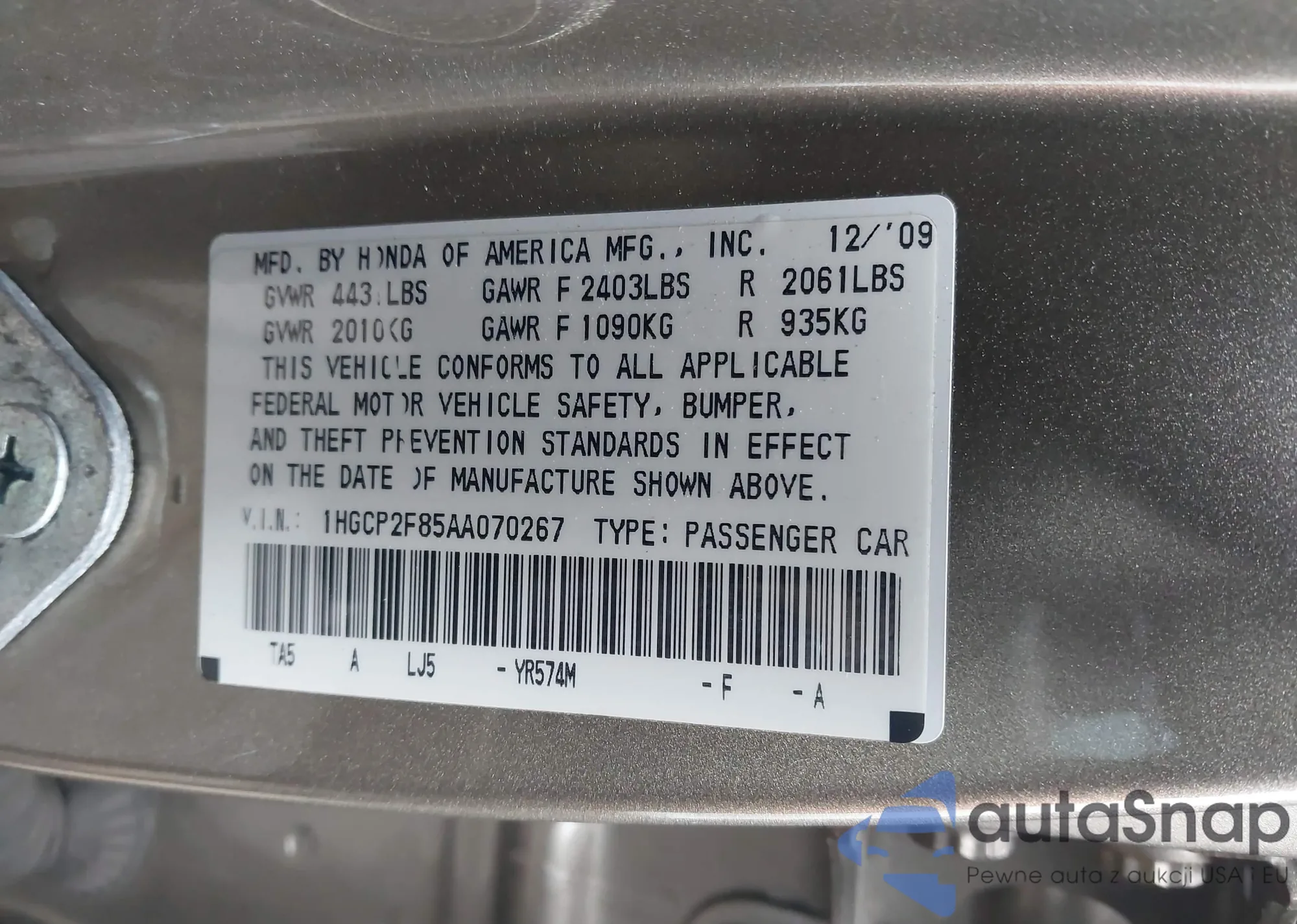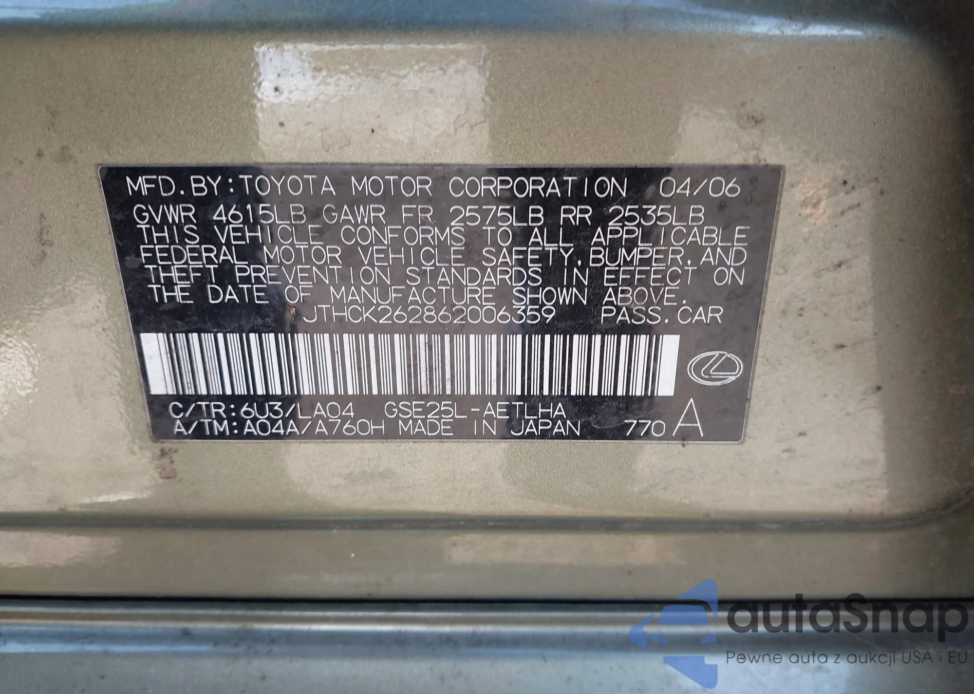 • VIN 2T2ZZMCA3HC042846