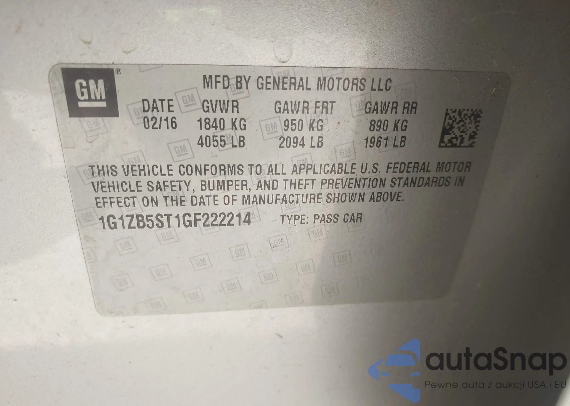 LOT: 43574522 VIN: 1G1BE5SMXH7243737