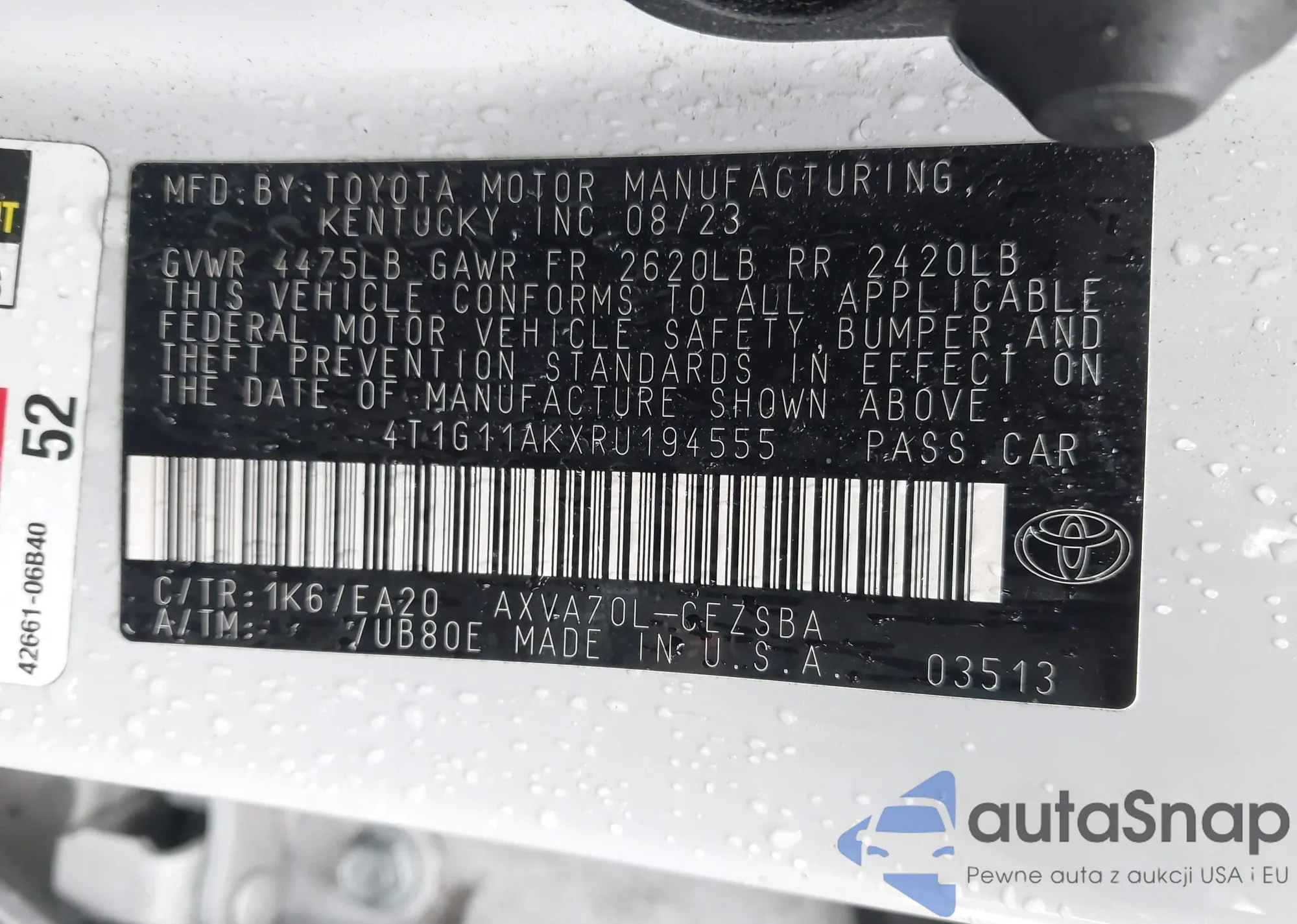 • VIN 4T1G11AKXRU194555