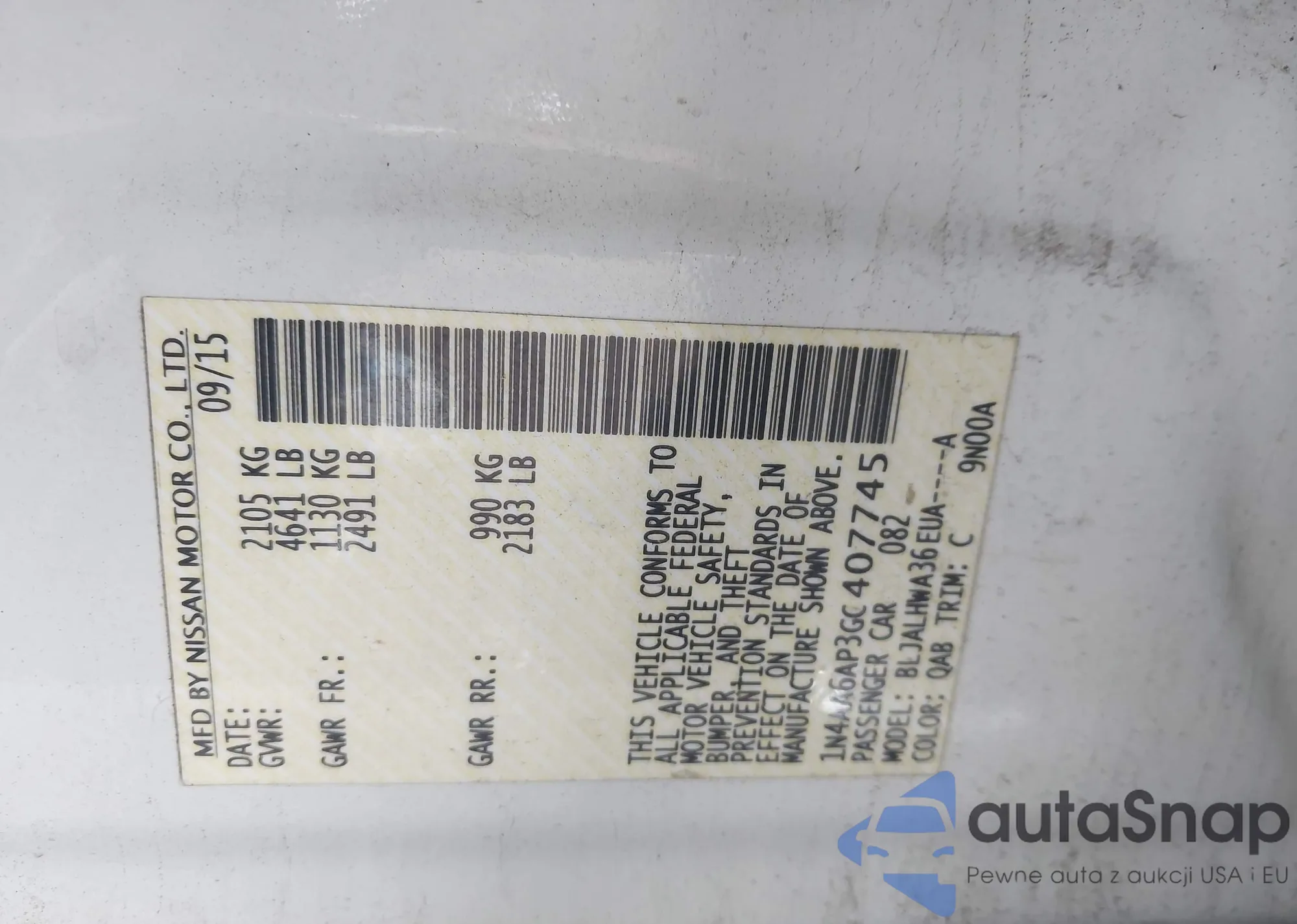 • VIN 1N4AA6AP3GC407745