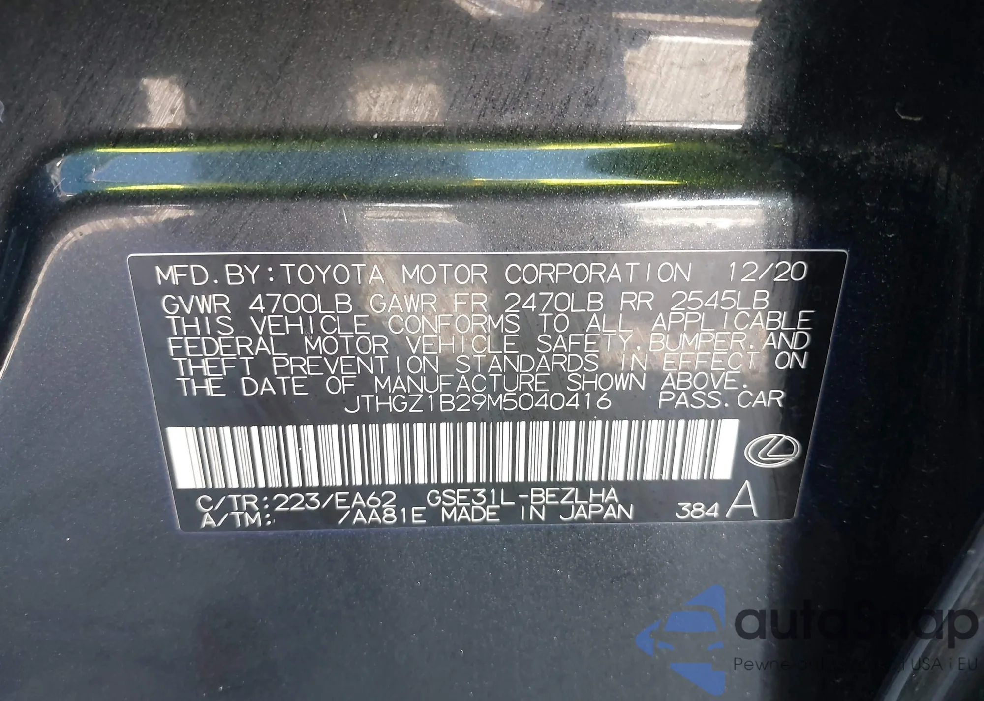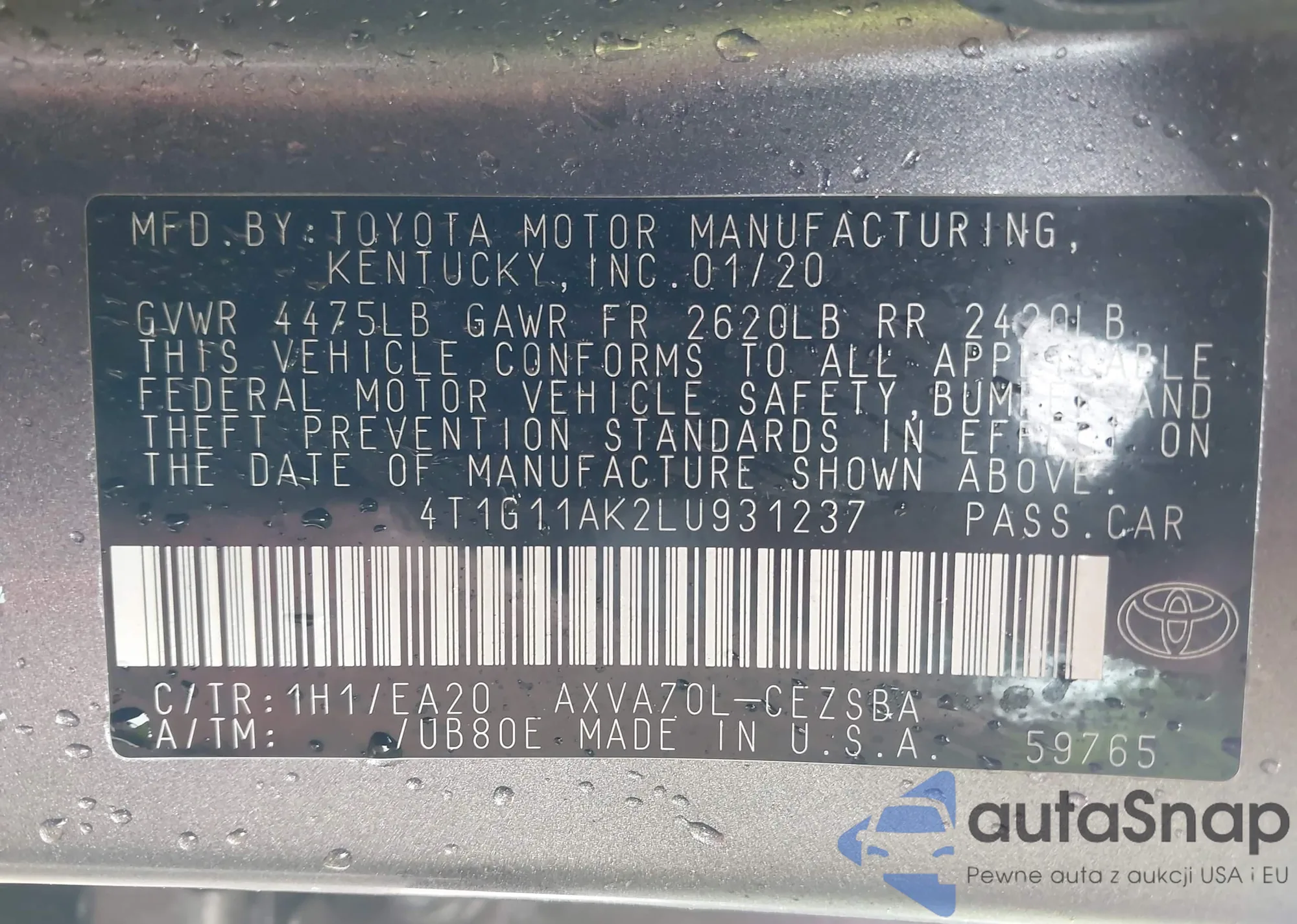 • VIN 4T1G11AK2LU931237