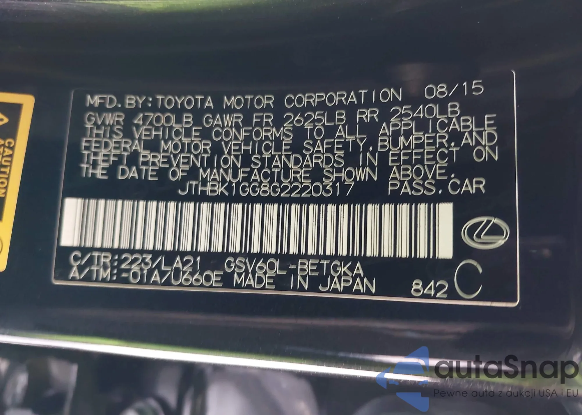 • VIN JTHBK1GG8G2220317