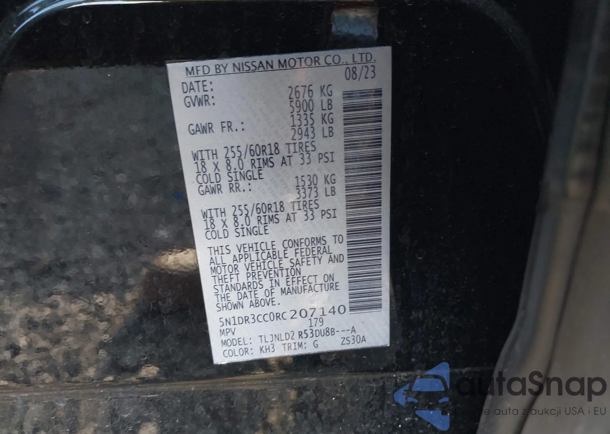 • VIN 5N1DR3CC0RC207140