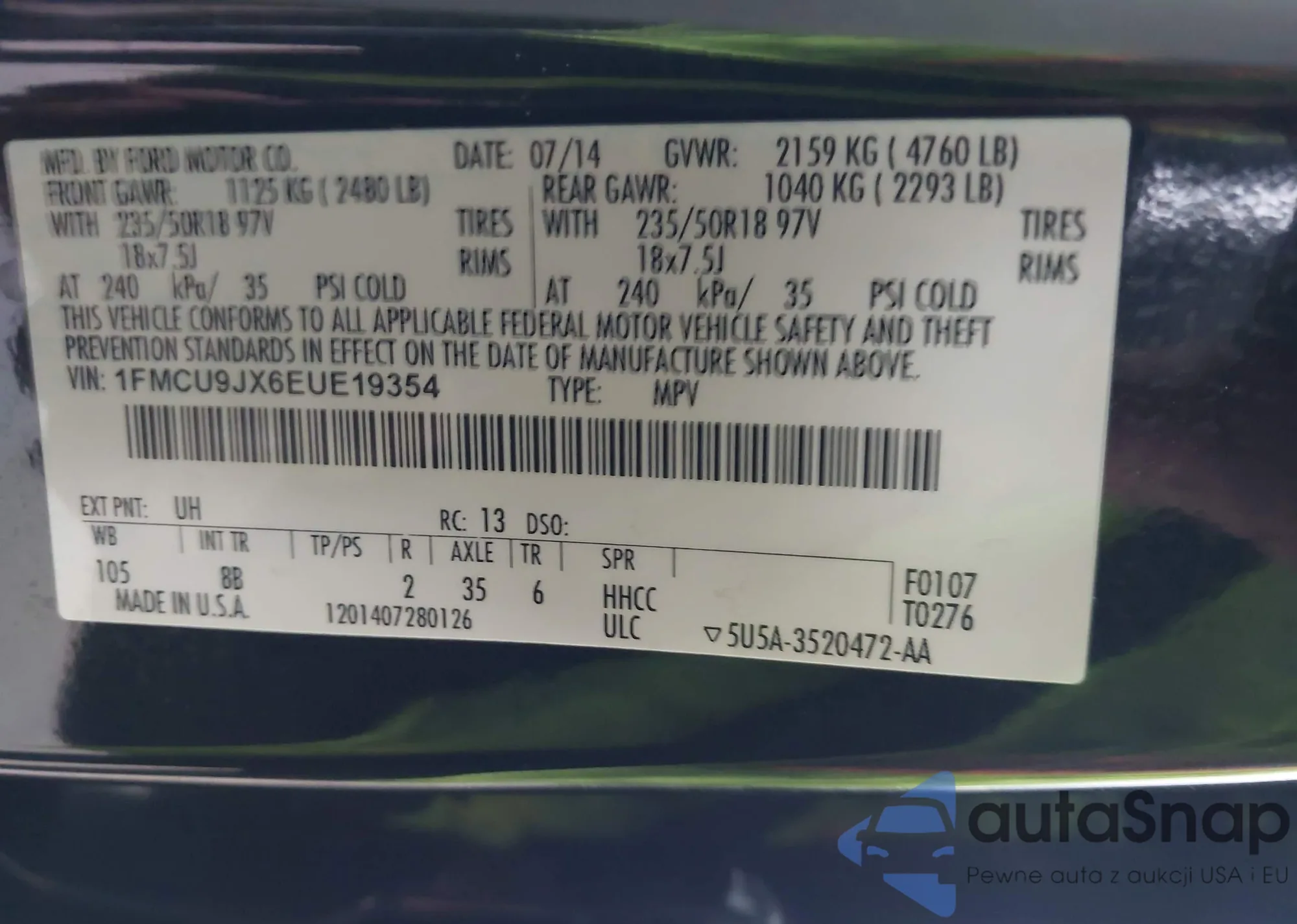 • VIN 1FMCU9JX6EUE19354