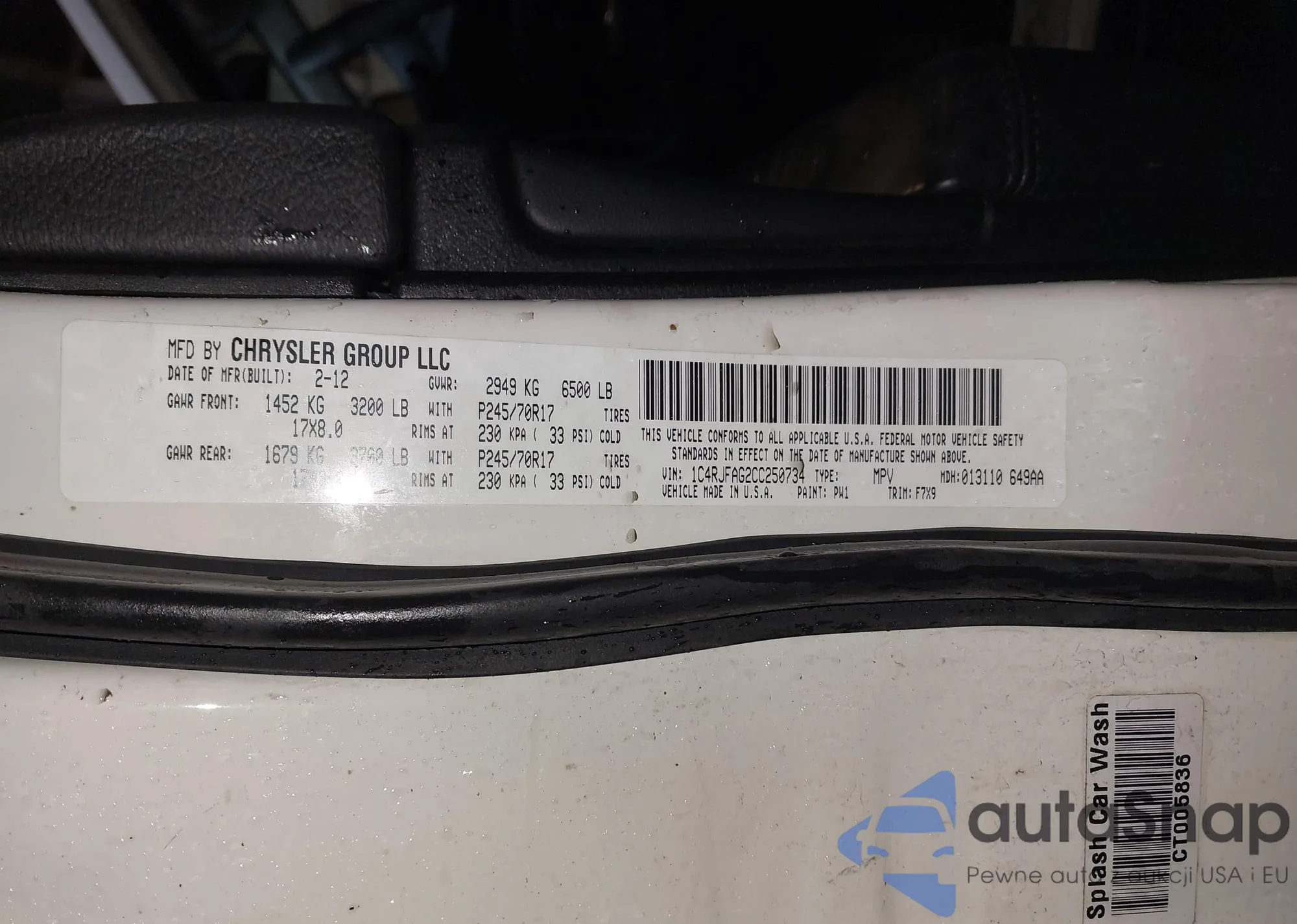 • VIN 1C4RJFAG2CC250734