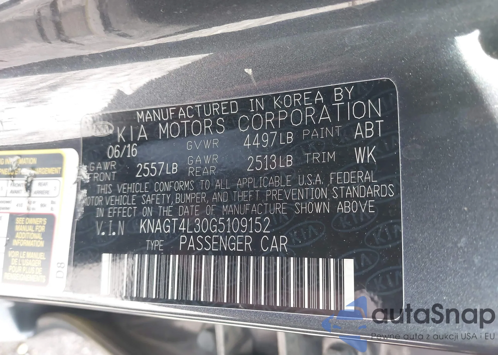 LOT: 43407484 VIN: KNAGT4L30G5109152