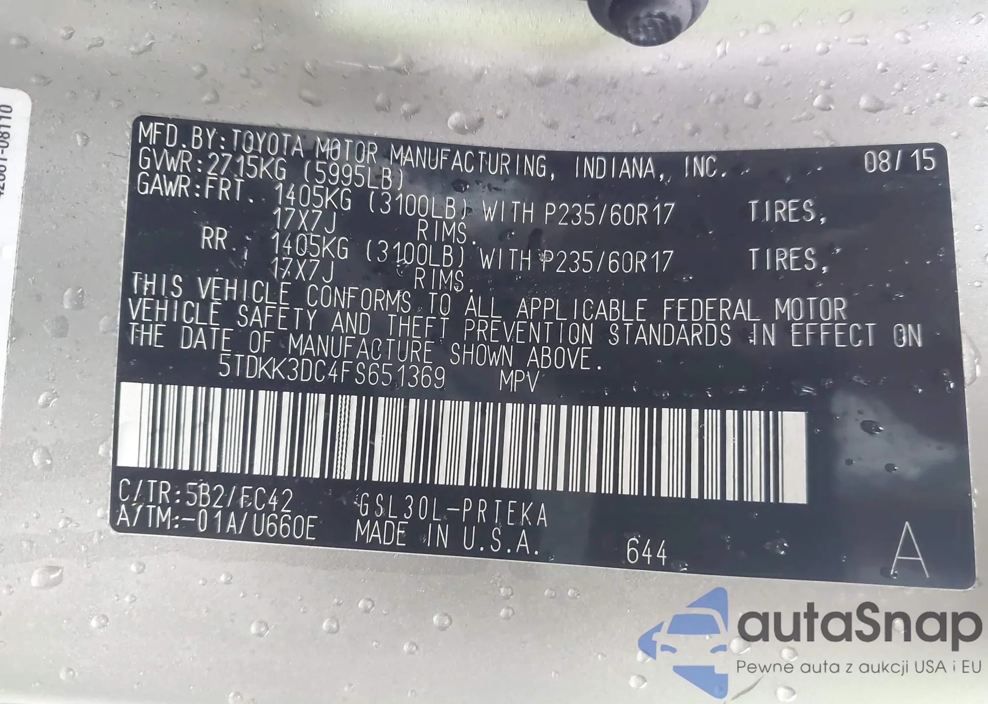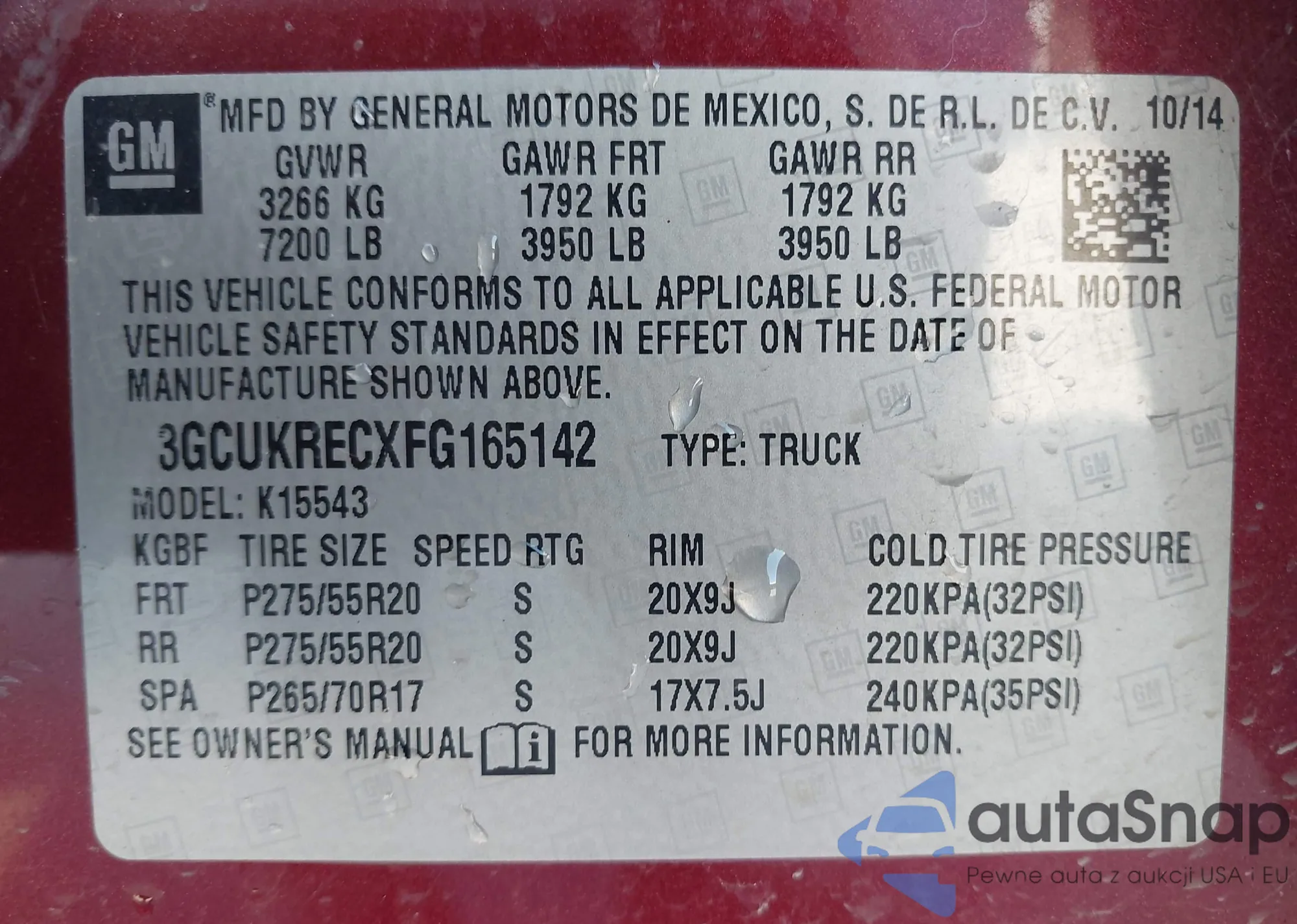 LOT: 43561806 VIN: 1GNSKBKC8FR156045